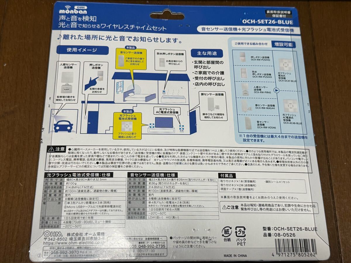 音センサー送信機+光フラッシュ電池式受信機 OCH-SET26-BLUE