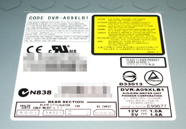 パイオニア DVR-A09XLB1 内蔵型DVDマルチドライブ ATAPI / IDE  メーカー修理済 ドライブ本体のみ  長期保管品  中古