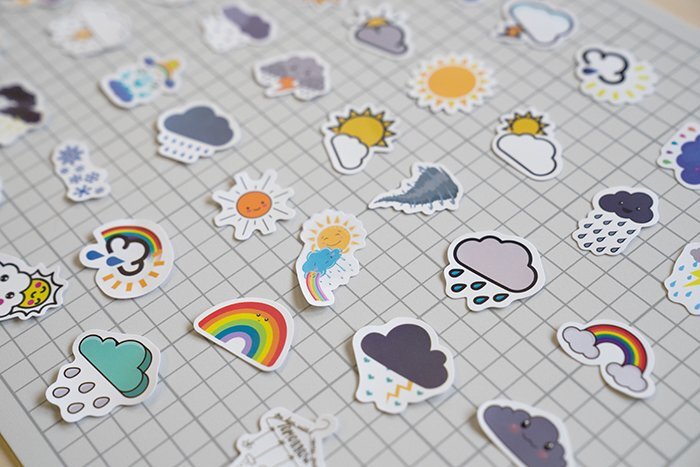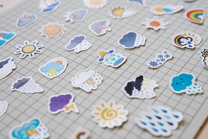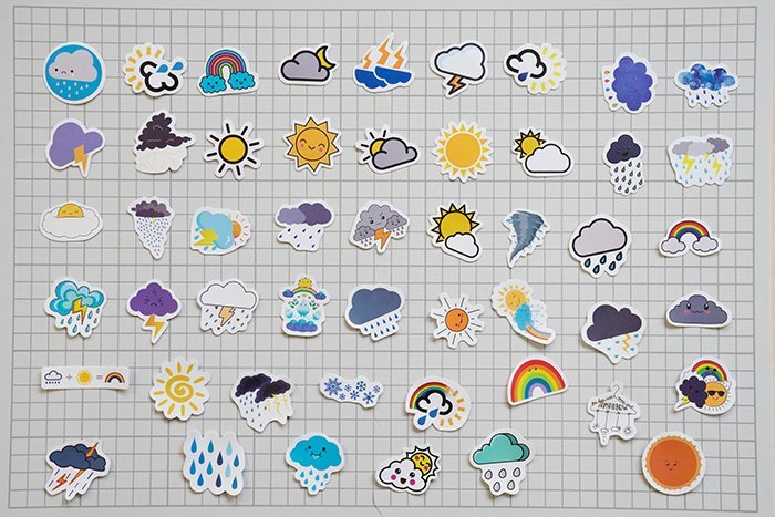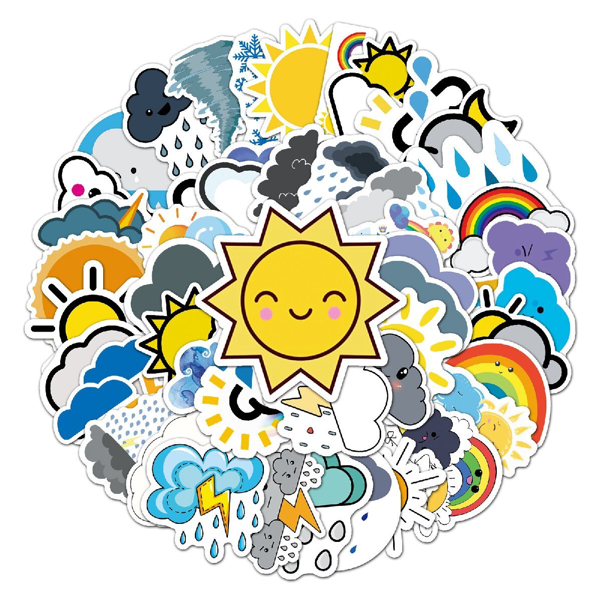 【ステッカー】全50枚・お天気 晴れ 曇り 雨 虹 カミナリ 雨のち晴れ 太陽 雪 サイズ:S(小さめ) (送料無料!)