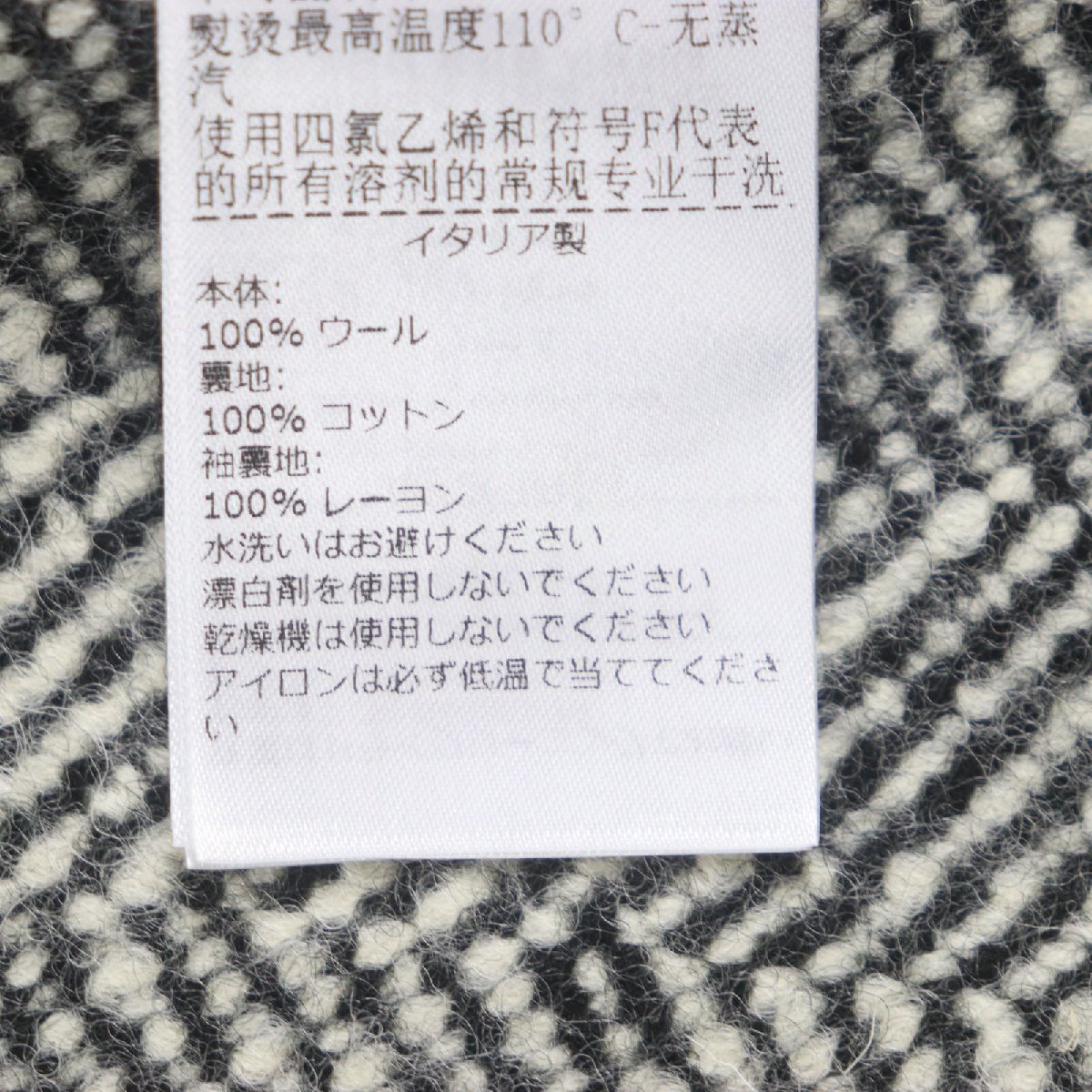 | 素材 (material) | 表地:ウール100% 裏地:コットン100% 袖裏地:レーヨン100% | ||||||||||||||||