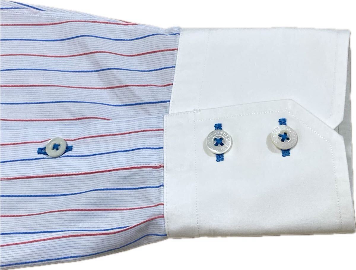 美品★バーバリーロンドン♂ピュアコットンオーダーメイドドゥエボットーニクレリックシャツ★ストライプ白
