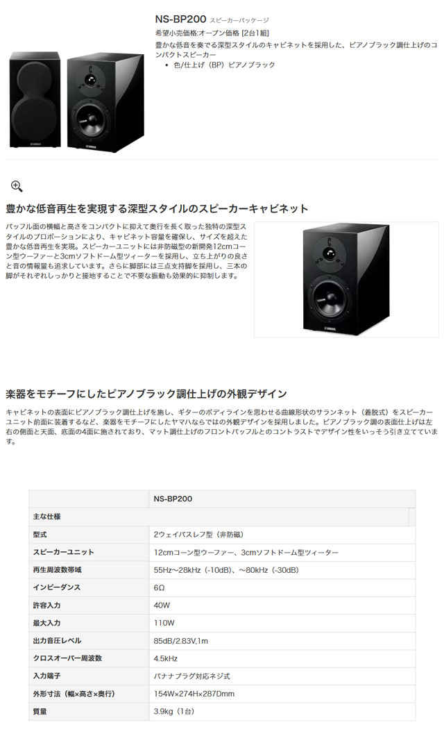 | メーカー・型式 | ヤマハ / NS-BP200 | |