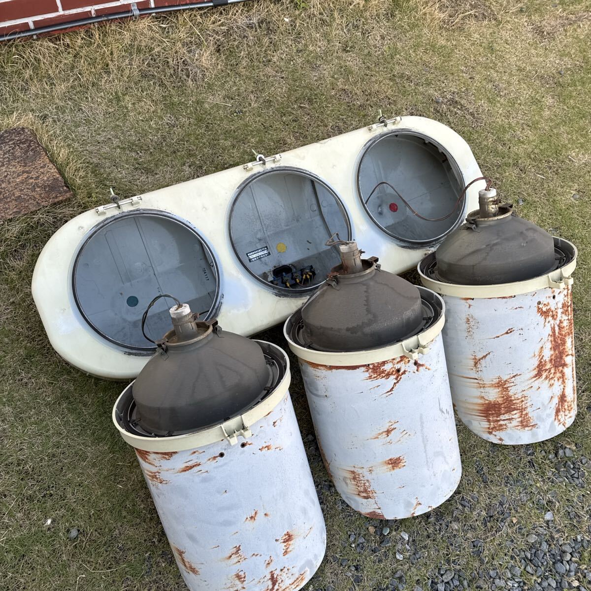 経年による劣化が時代を感じさせます、、AC100vの電球が使えますので配線して頂ければ家庭でも点灯すると思われます。