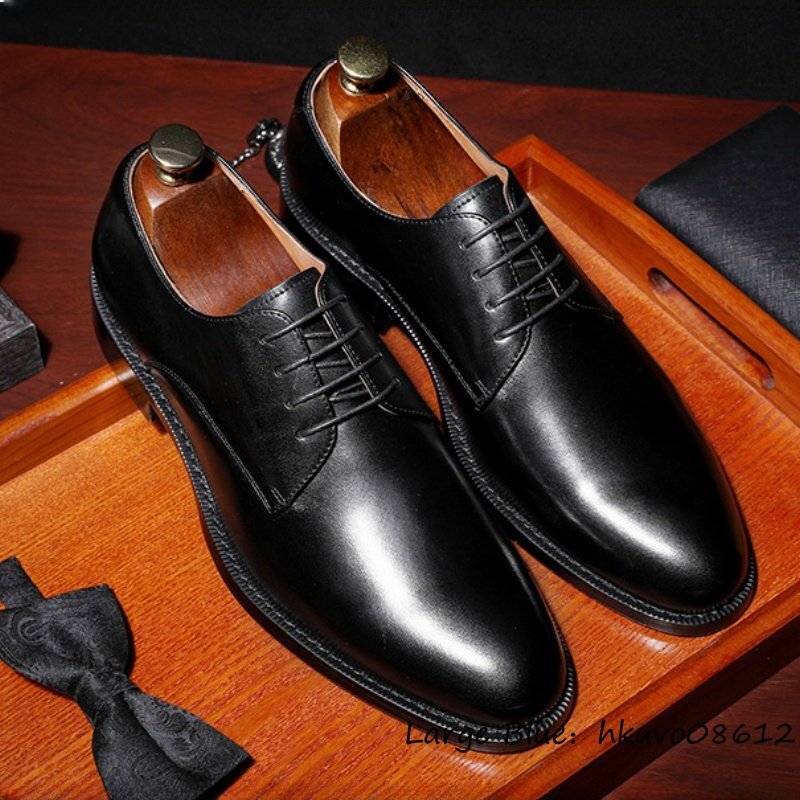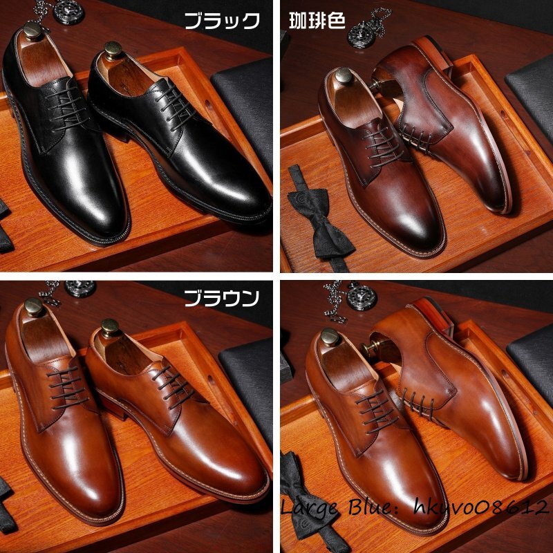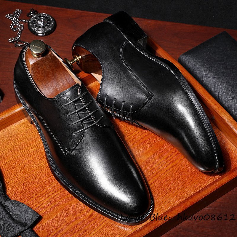 超希少★定価11万 ビジネスシューズ 職人手塗り上げ 本革 レザーシューズ メンズ イギリス風 紳士靴 革靴 牛革 フォーマル ブラック 24.0cm