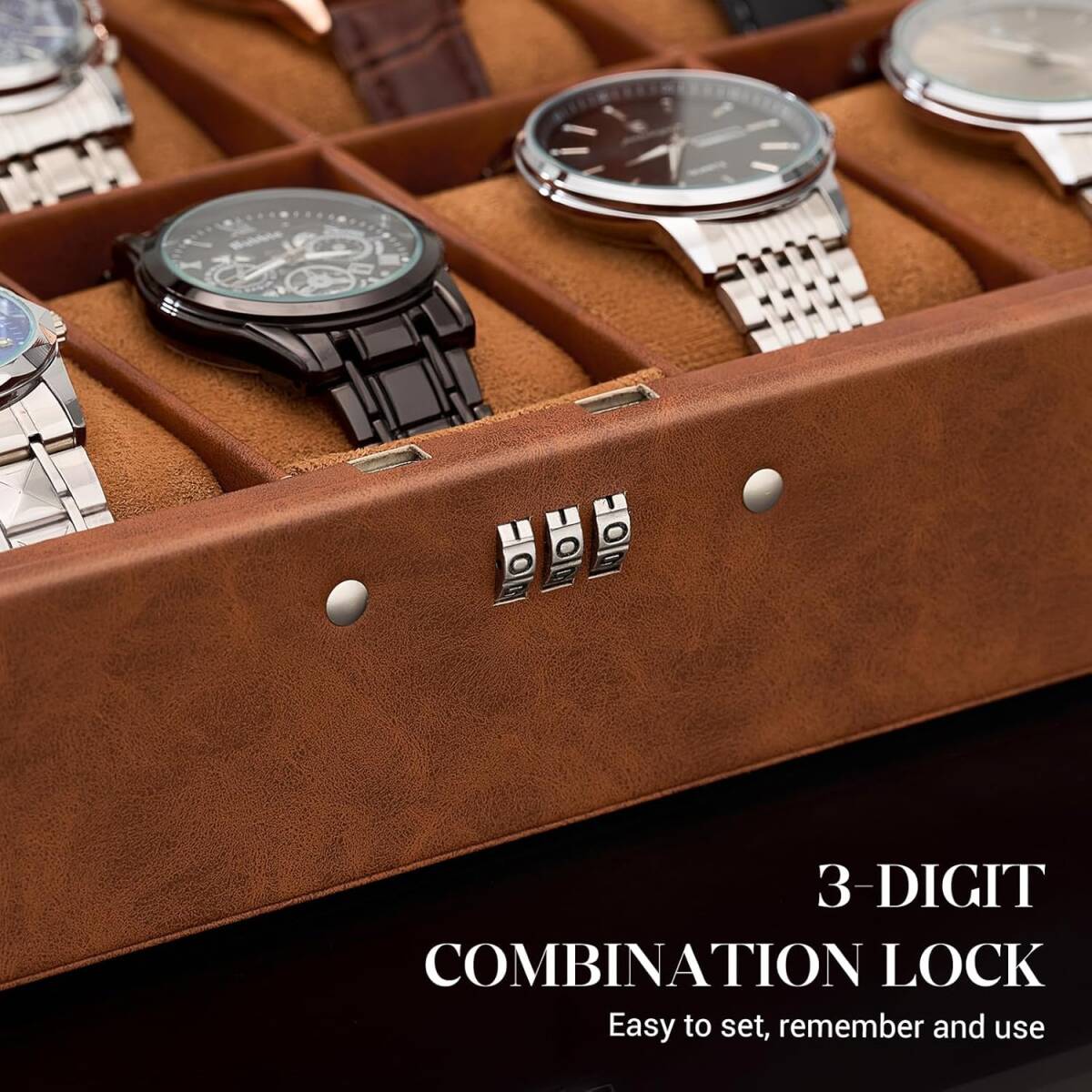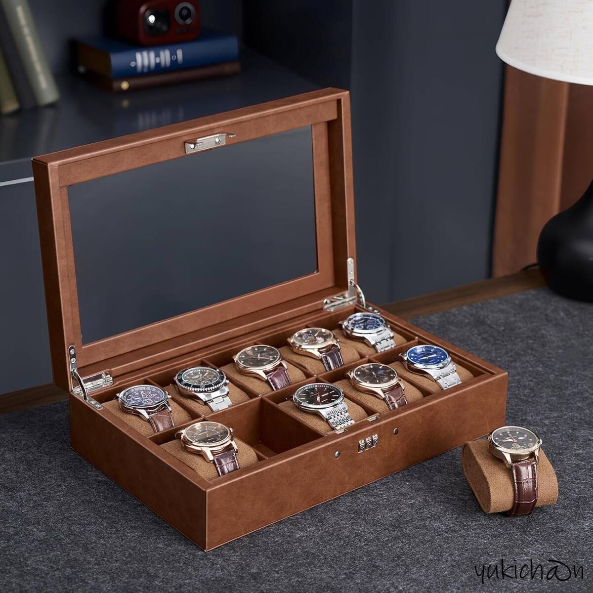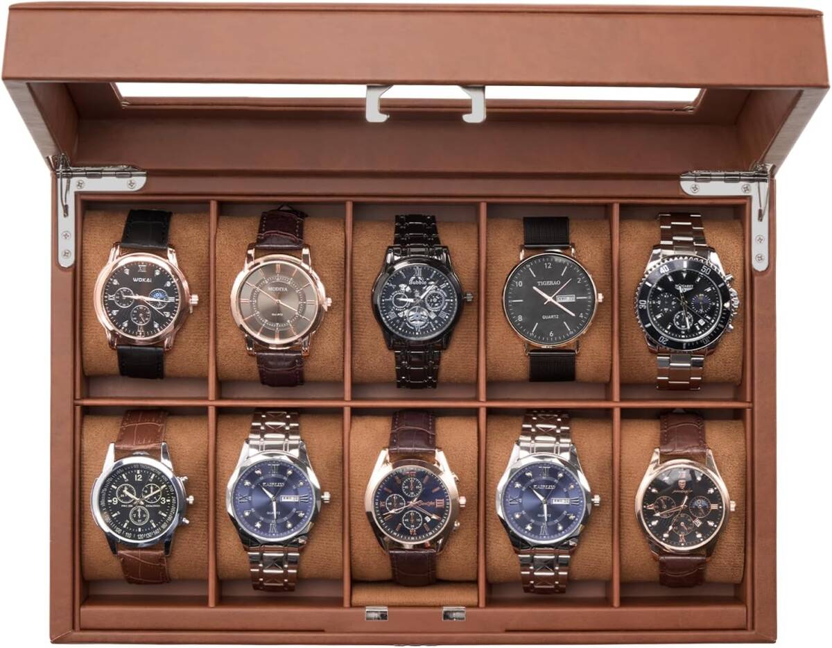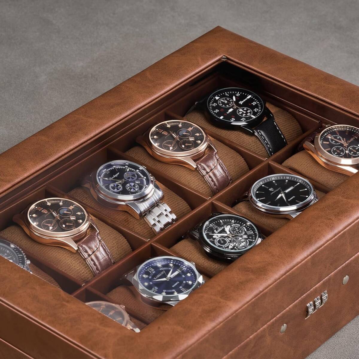 腕時計ケース ウォッチボックス ディスプレイ収納ケース ブラウン 10本 大容量 パスワードロック付き 時計オーガナイザー ガラス天板