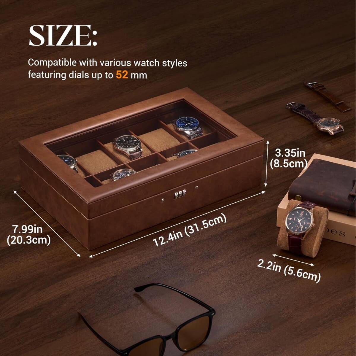 サイズ:幅約5.6cmスペース×10本収納(文字盤52mmまで対応)