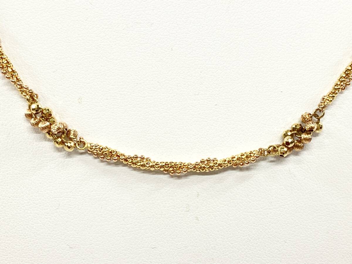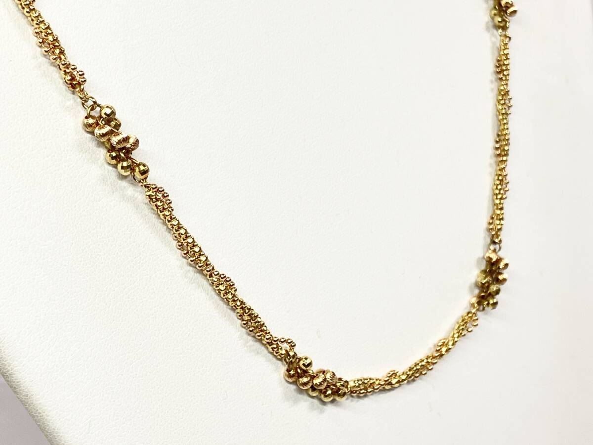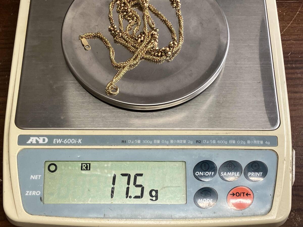 素材:K18 品名:ネックレス チェーン全長:約70cm チェーン幅:約2.7~5.4mm 総重量:約17.5g ※画像のものが全てです。 ※サイズはスタッフが手作業で計測しており、誤差が生じる場合がございます。 ※こちらの商品は店頭併売のため出品時以降小キズや汚れがつく場合がございます。予めご了承下さい。 ※撮影環境により実物と色が異なって見える場合がございます。 | ||||||
