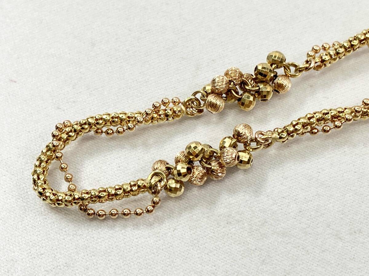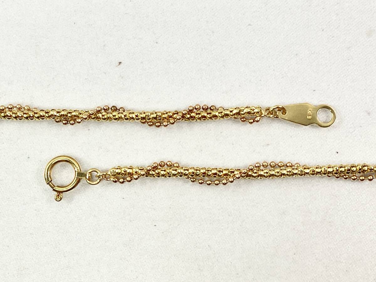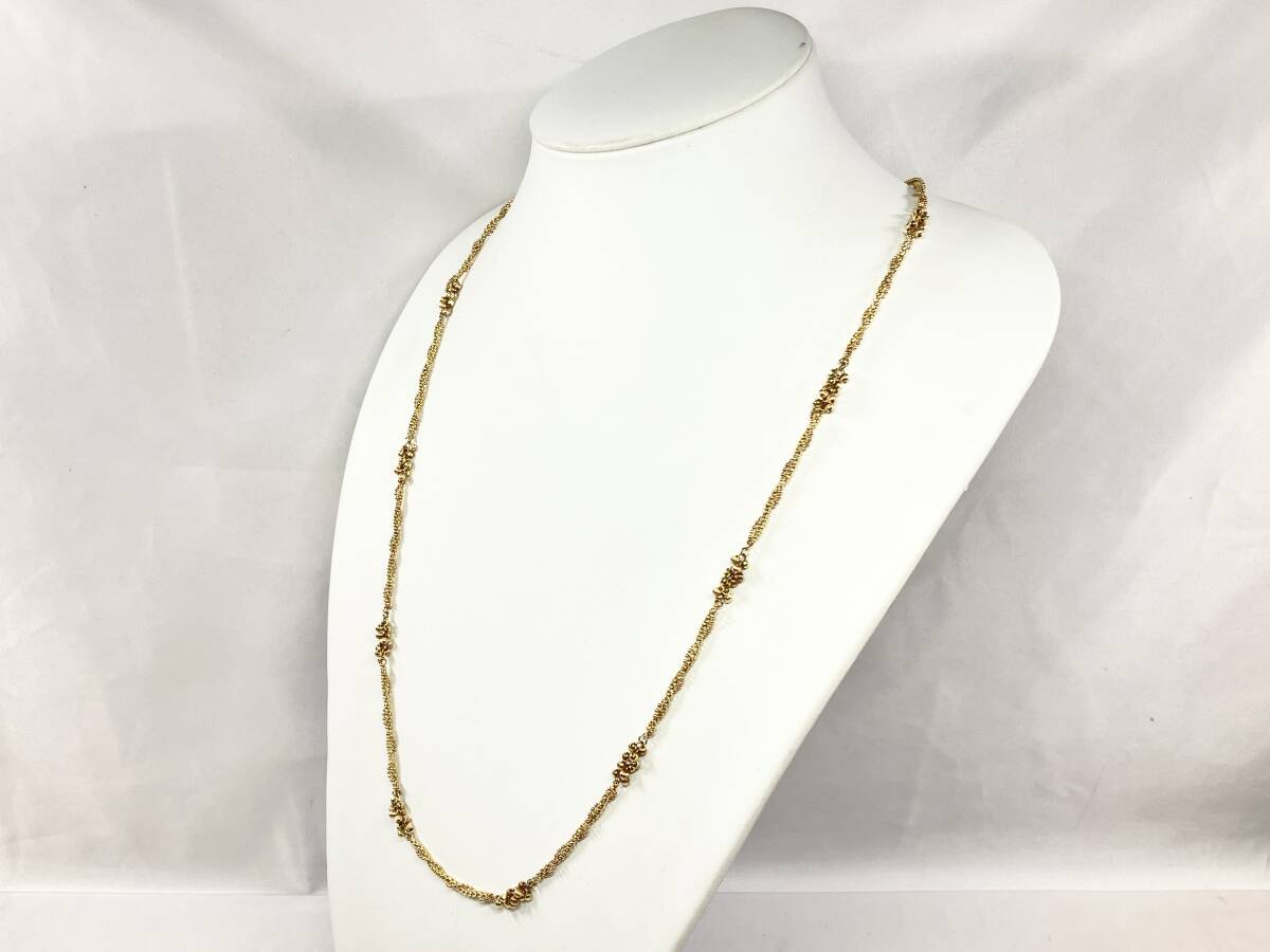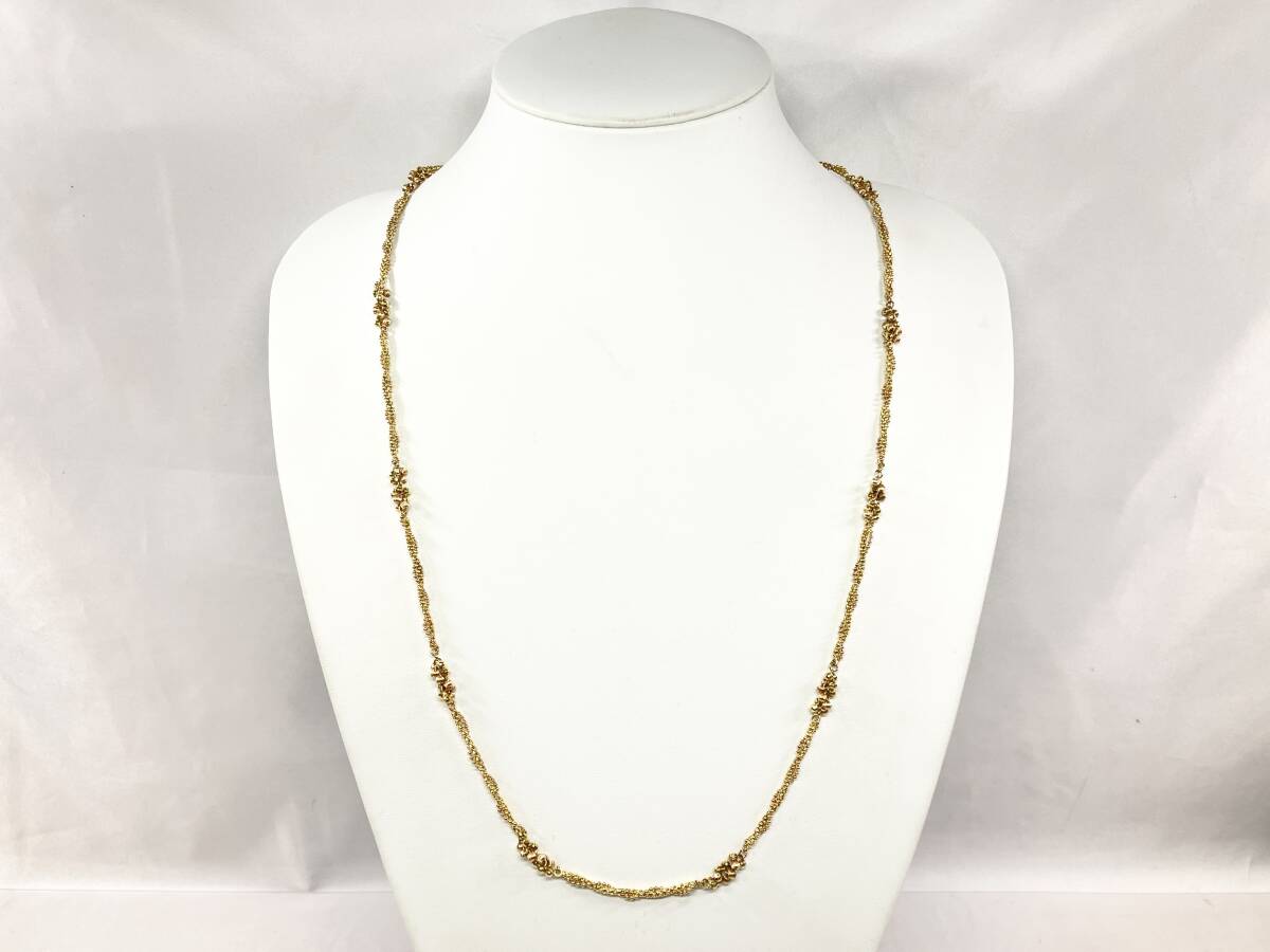 素材:K18 品名:ネックレス チェーン全長:約70cm チェーン幅:約2.7~5.4mm 総重量:約17.5g ※画像のものが全てです。 ※サイズはスタッフが手作業で計測しており、誤差が生じる場合がございます。 ※こちらの商品は店頭併売のため出品時以降小キズや汚れがつく場合がございます。予めご了承下さい。 ※撮影環境により実物と色が異なって見える場合がございます。 | ||||||