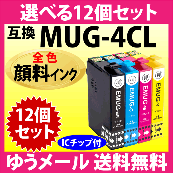 エプソン MUG-4CL 対応 互換インクカートリッジ(目印:マグカップ)全色 顔料インク 耐候性が高く・にじみにくい・文字くっきり