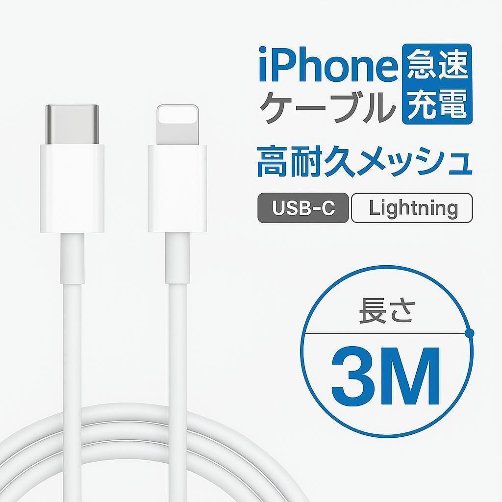 3M 3本 iPhone 急速充電 充電ケーブル ライトニングケーブル 充電器 急速 ライトニング スマホ 携帯電話 高速 充電 PD 純正品質 車充電