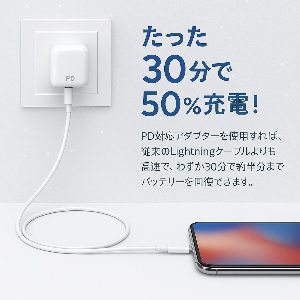 最新のMFi認証で最大2.4A急速充電に対応。通常より速く充電でき、480Mbpsの高速転送で音楽や写真もスムーズに移動可能。