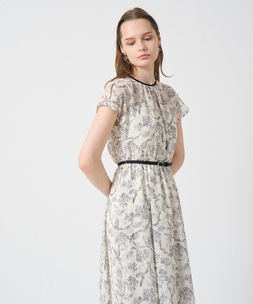 参考商品名:リーフカリグラフィープリントベルト付きワンピース