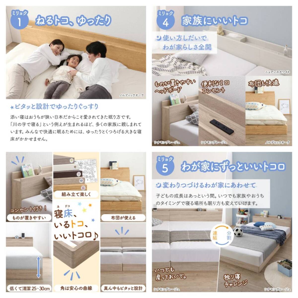 ※本製品はコイルマットレス使用時の基準で強度計算されております。床板の上に必ずコイルマットレスを敷いてご使用ください