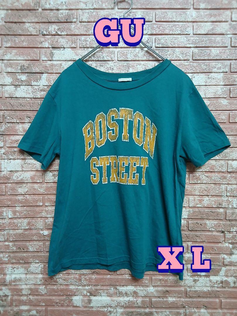 【GU】レディース プリント クルーネック 半袖Tシャツ グリーン XL