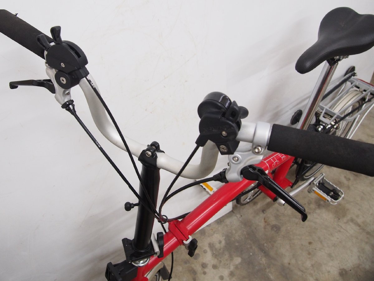 を出品させて頂きます。 ■仕様 メーカー ブロンプトン BROMPTON 名称 ミニベロ 型番 M2R? 年式 電圧 電源コード サイズ 約 ×× cm セット内容 詳細 現状品 特記 折りたたみ 自転車 Made in London ■外観 傷、汚れあり 多少傷ありますが状態は良い方だと思います。 ■確認内容 状態もよく乗り心地、ギアの切り替えと言った簡易動作確認済みです。 折りたたみもスムーズに出来ます。 後輪ギア2段変速、Mハンドル、リアキャリア、空気入れ付属 型番は異なる可能性があるので写真にて良くご確認よろしくお願い致します。 現状品としての出品となります。 メンテナンスや修理など多少必要な物とお考えください。 是非ご検討よろしくお願い致します。 ■出品管理番号:T0908-1 | ||||||||||||||||||||||||||