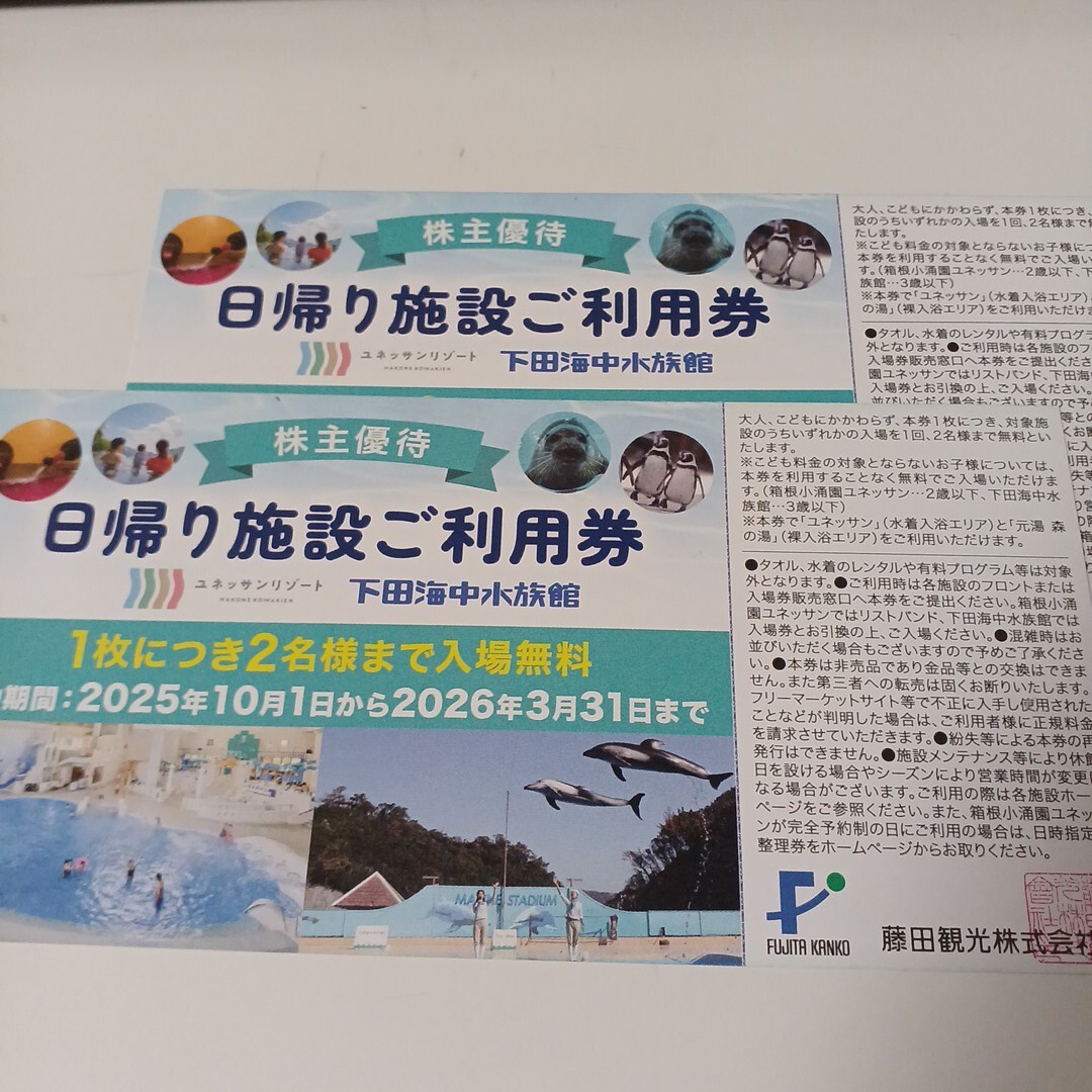 藤田観光の株主優待券2枚(4名分)です。