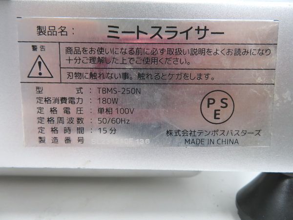 ◆テンポス 2023年◆ミートスライサー TBMS-250N 100V 490×390×380 サイズ:W490×D390×H380(mm) 電 源:100V 回転刃:25cm 製品質量:15.5kg 備 考:画像の通り未使用に近い状態です。 出品にあたり動作確認・クリーニング済みです。 多少の傷・使用感等がありますので、予めご了承ください。 中古品ですので、画像をよくご確認の上、ご理解頂ける方のご入札をお願いいたします。 神経質な方はご入札をご遠慮ください。 気持ちの良いお取り引きにしたいと思いますので、ご不明な点等ございましたらお気軽にご質問ください。 | |