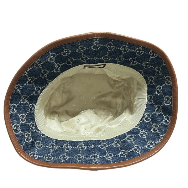グッチ GUCCI ハット M58.0cm - コットン、レザー ネイビー×ベージュ×ダークブラウン GG柄/デニム 美品 帽子
