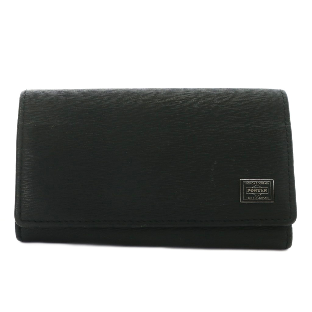 ポーター PORTER 吉田カバン カレント CURRENT キーケース 三つ折り 4連 レザー ロゴ 黒 ブラック /XZ ■GY18 メンズ
