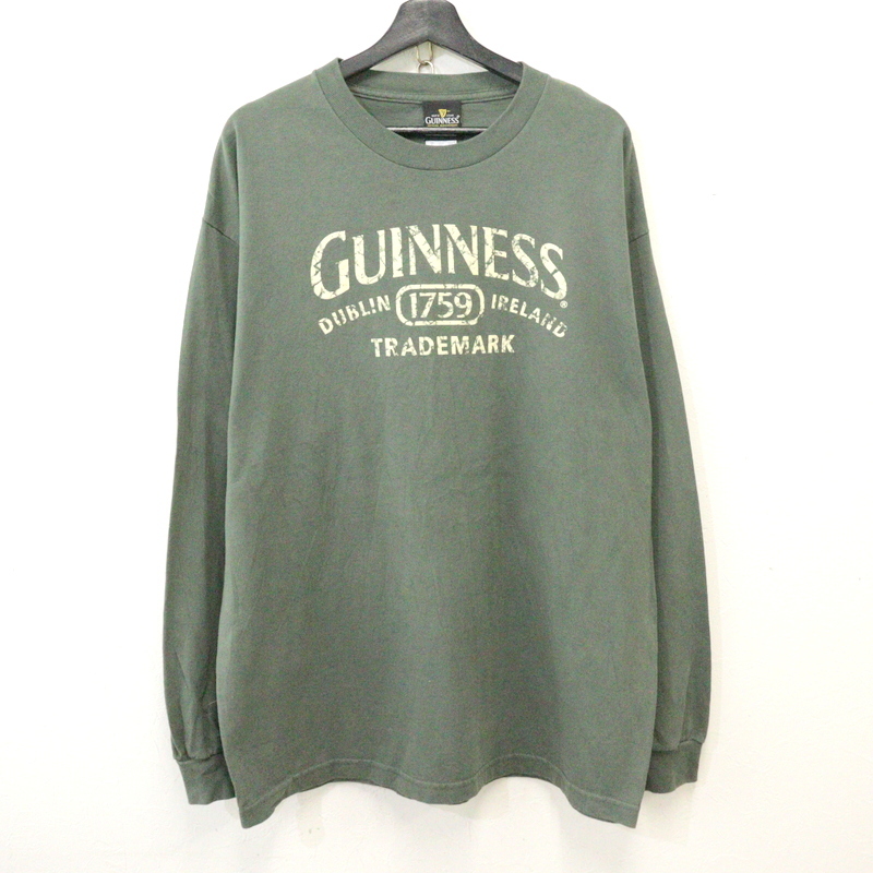 m111 2000年代製 GUINNESS 長袖Tシャツ■00s 表記XLサイズ グリーン 緑 ロンT ギネスビール アメカジ ストリート 古着 激安 希少 90s 80s