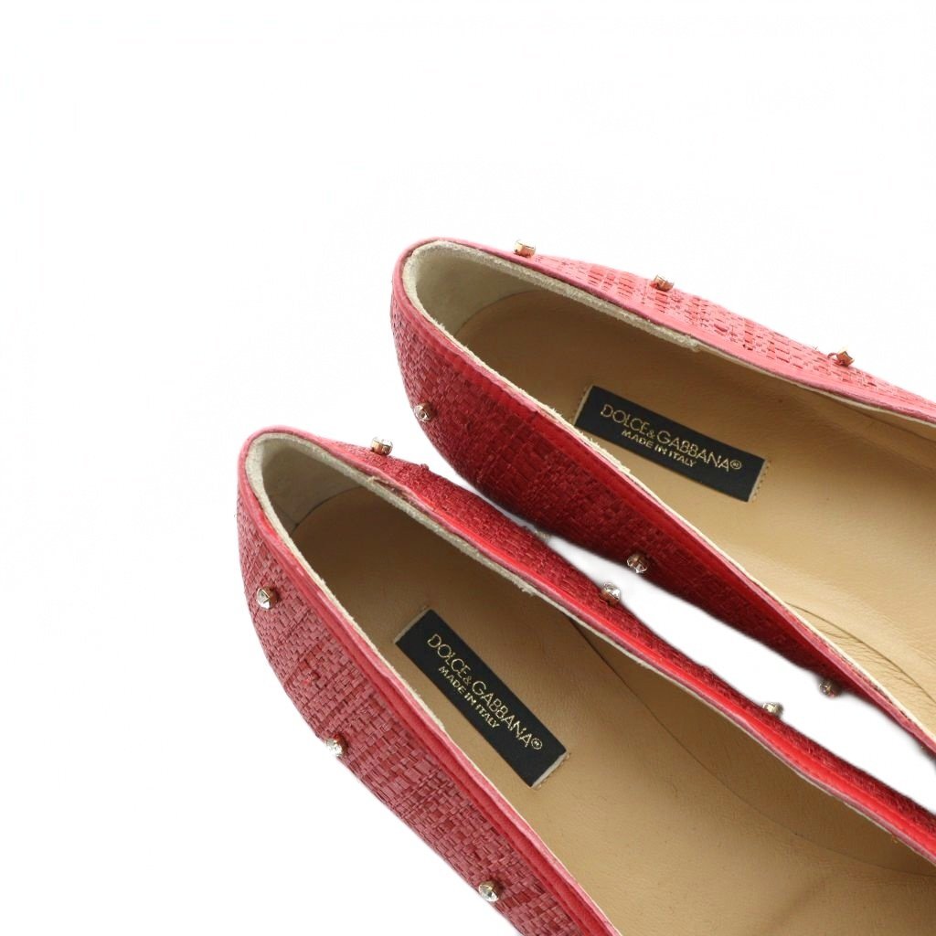 ドルチェ&ガッバーナ ドルガバ DOLCE&GABBANA フラットパンプス ビジュー ラウンドトゥ ロゴ ストーン 38.5 24.5cm 赤 レッド