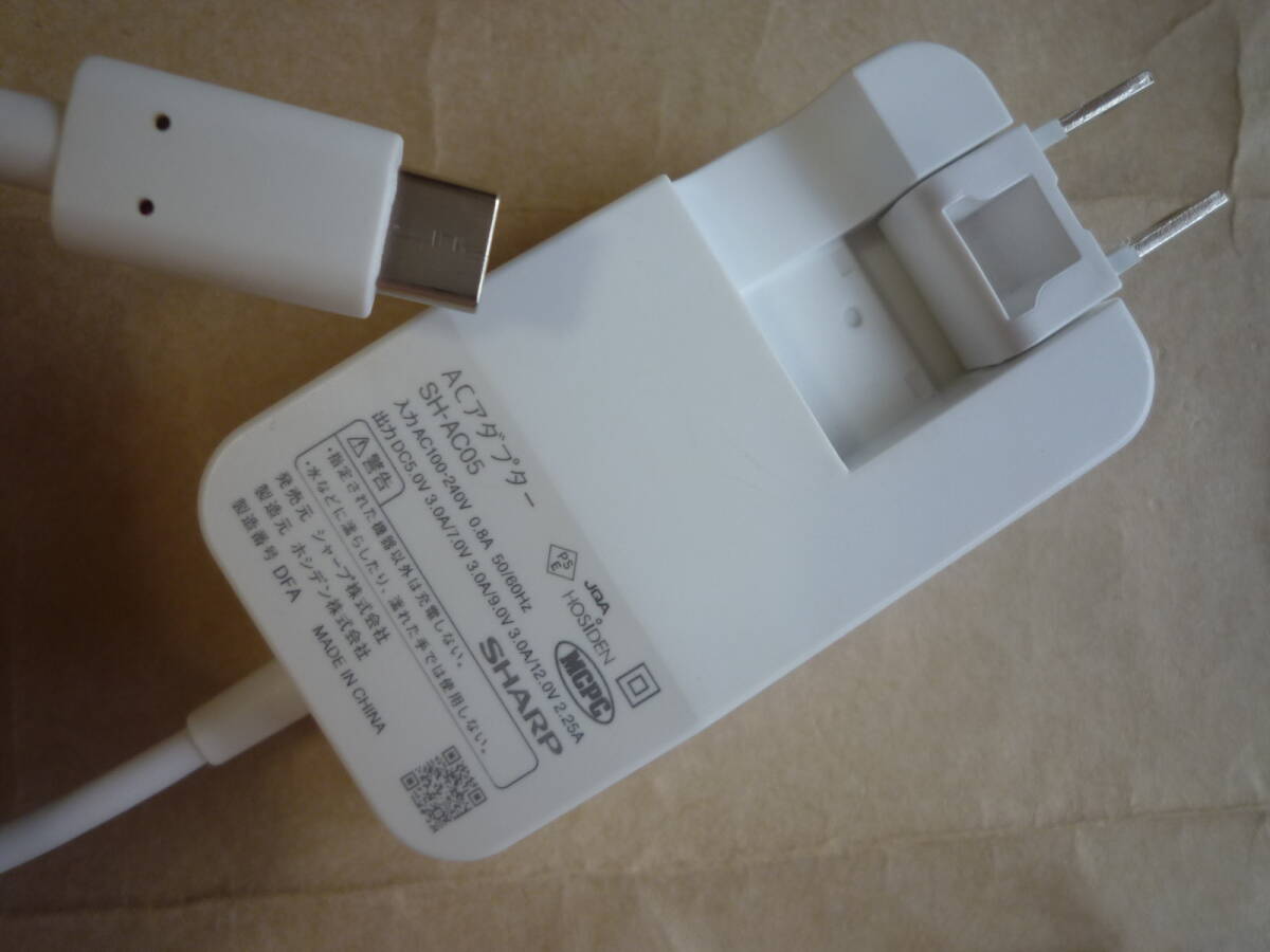 SHARP シャープ ACアダプター SH-AC05 Type-C Cタイプ 充電器 急速充電 USB-C ホワイト 白