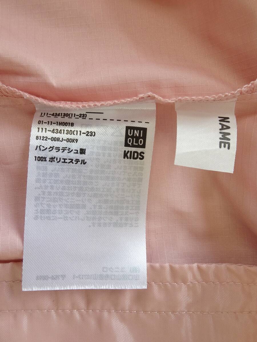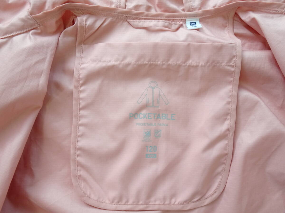 UNIQLO★ユニクロ★パーカー★薄手★ポケッタブル仕様★撥水加工★UVカット★ピンク★120