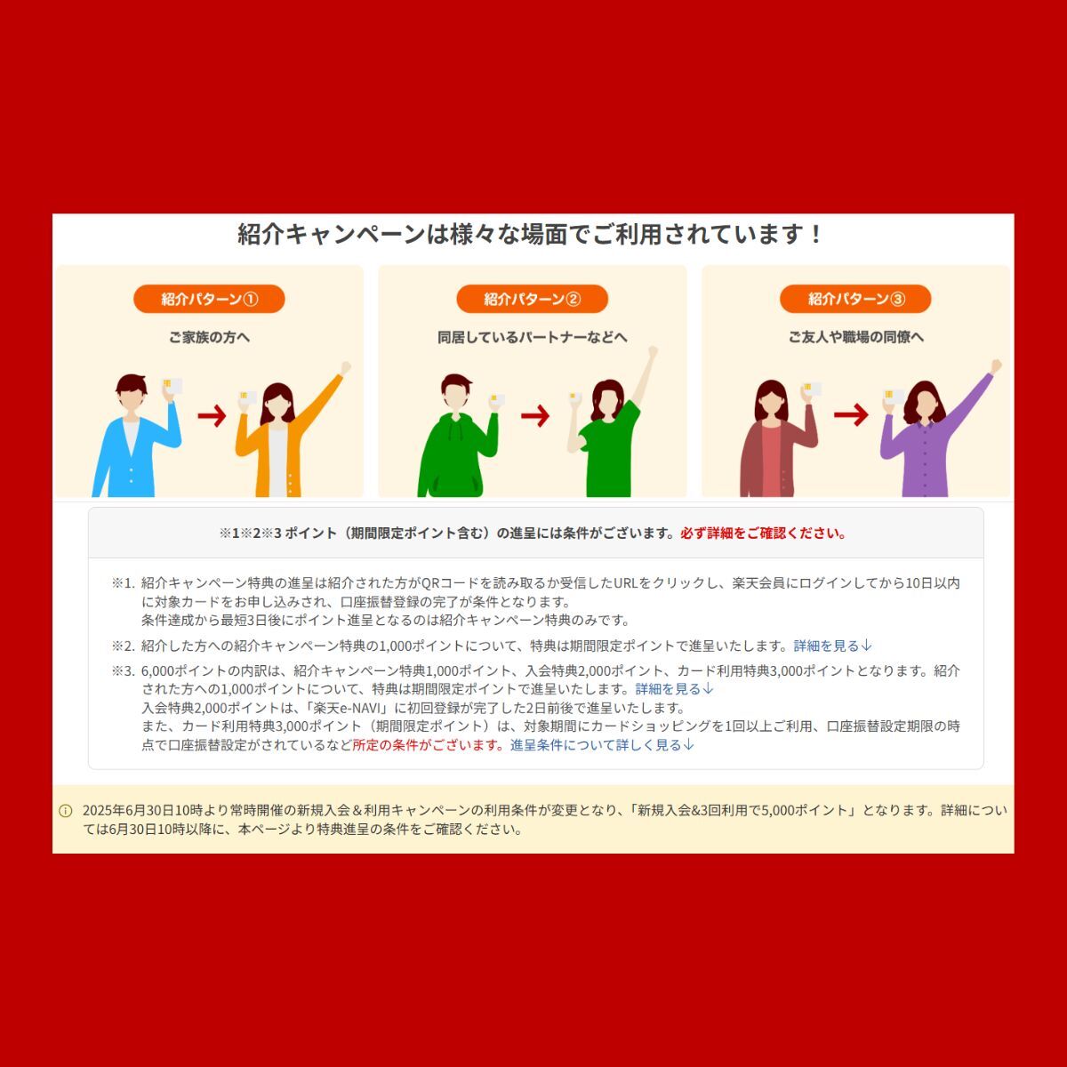 【楽天カード】友達紹介URL|新規入会&条件達成で6000円分ギフト!★即決1円・送料無料★