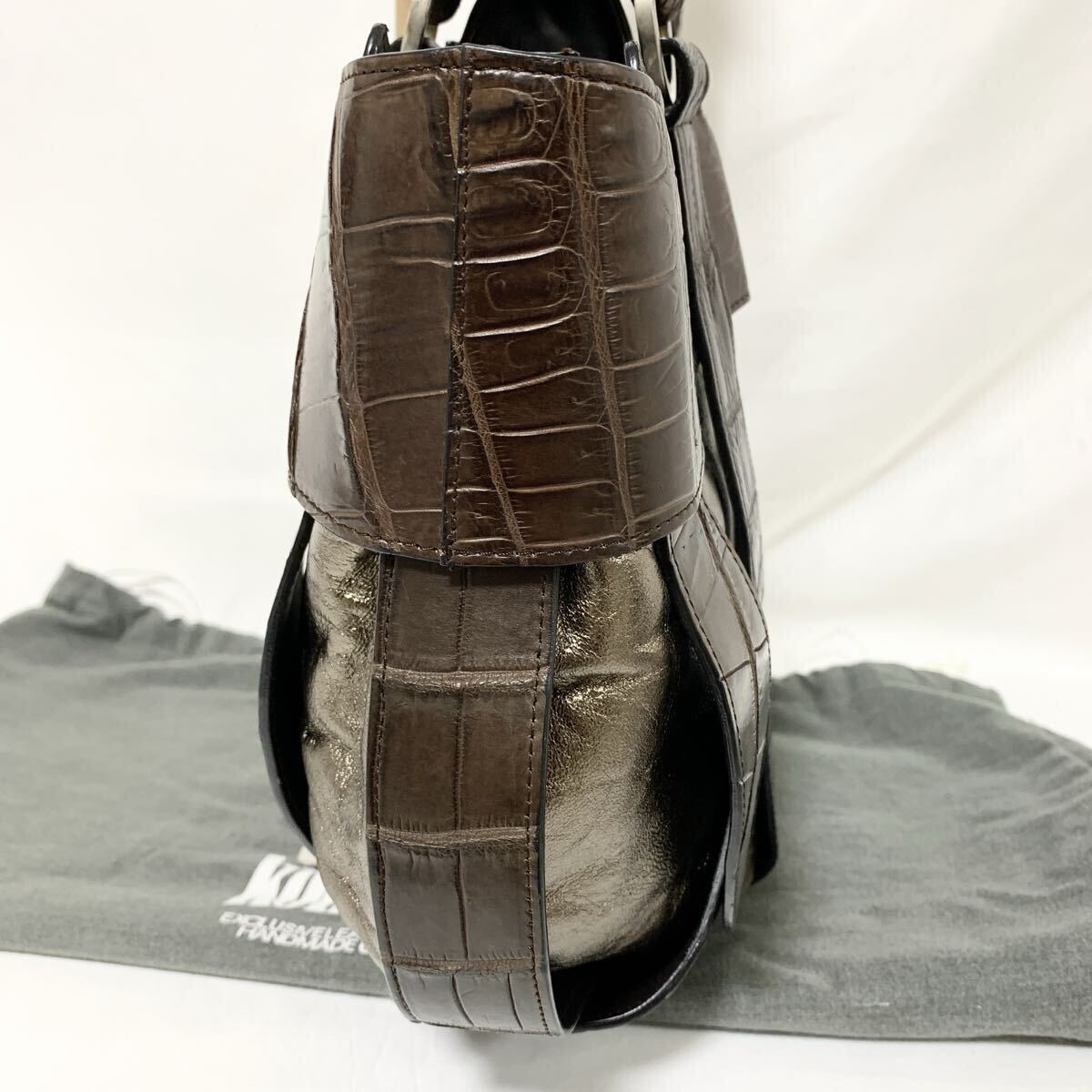 美品/1円 IRV認定 マットクロコダイル トートバッグ ショルダー 肩掛け シルバー金具 レザー 鰐革 センター取り ブラウン 茶 肩掛け 大容量