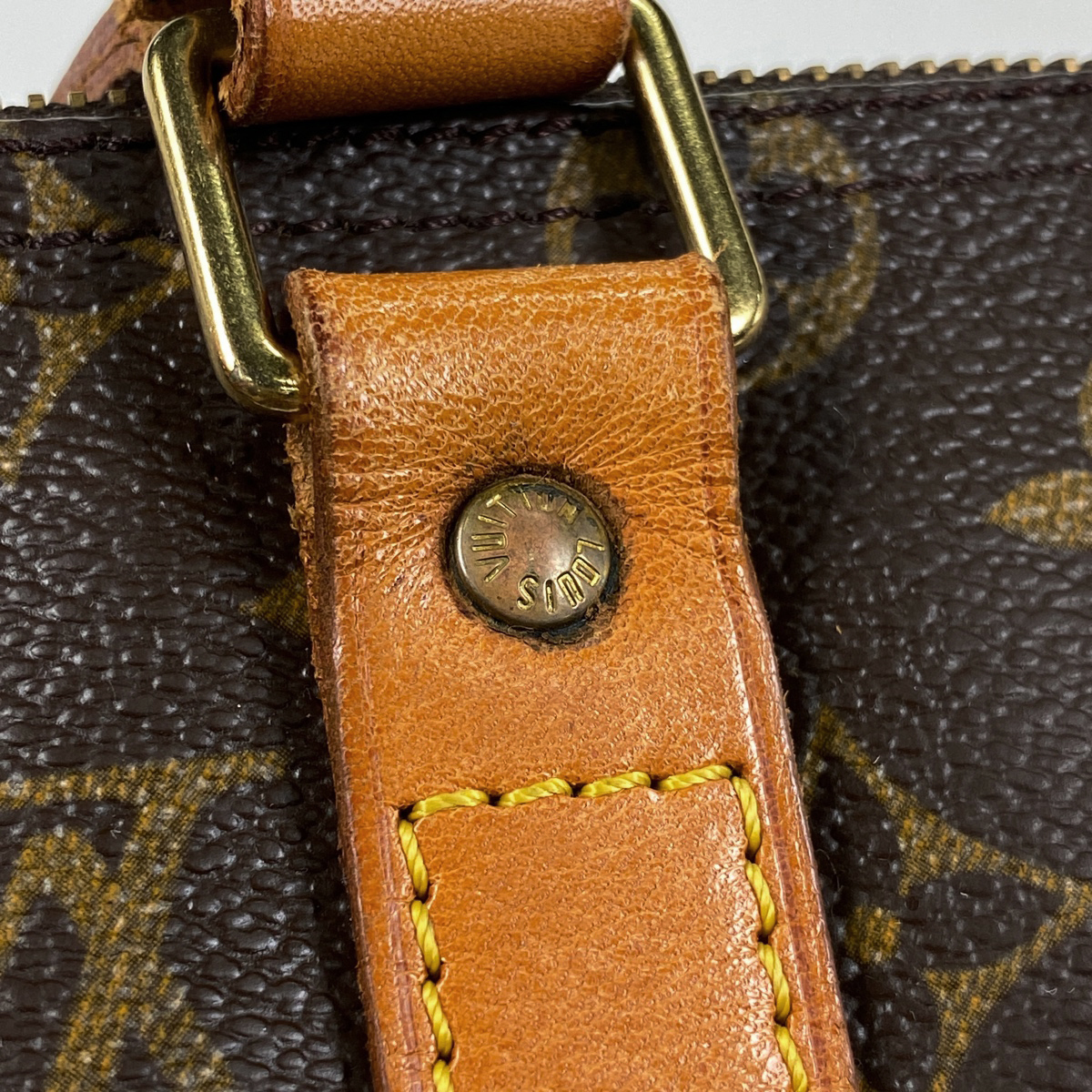 | 《全体》型崩れ、生活臭、スレ、キズ、シワ、汚れ 《内ポケット》押し跡 《ヌメ革》ヤケ、シミ、毛羽立ち、ひび割れ 《ショルダーストラップ》へたれ、毛羽立ち、ひび割れ、剥がれ 《金具》剥がれ、変色、小キズ、くすみ、青錆 《ストラップ根元》剥がれ |