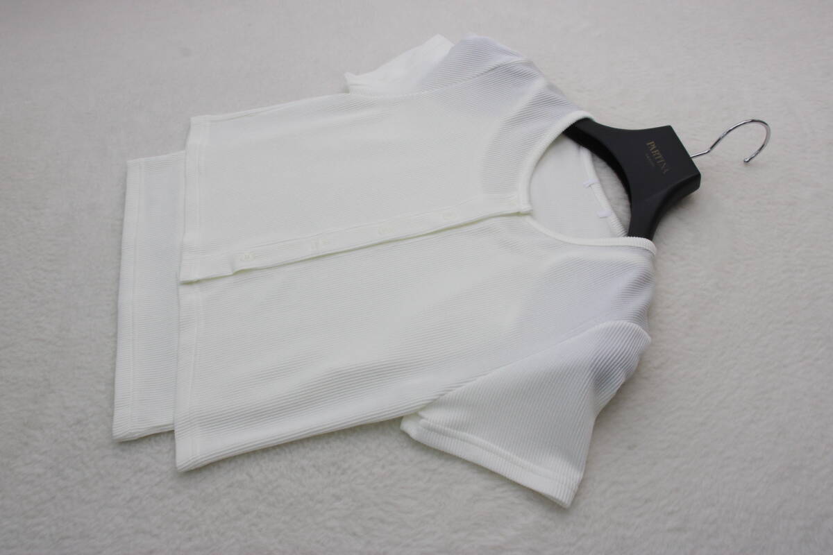 4144 新品 リブキャミ&半袖カーディガンセット ホワイトFサイズ