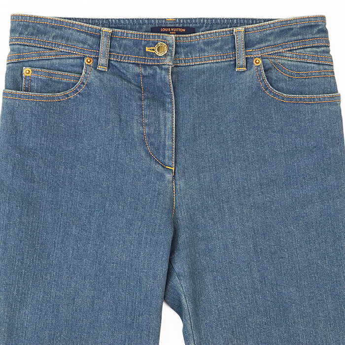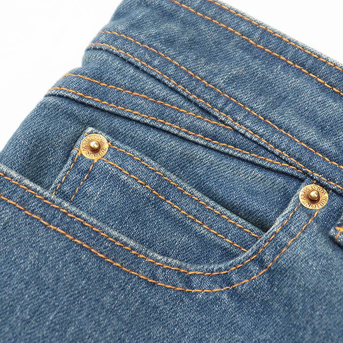 ■ デニム モノグラム LV ロゴ パッチ 金ボタン ストレッチ ジーンズ パンツ【2100020000031488CKFRZ】