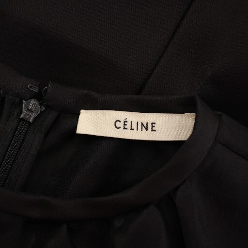 セリーヌ CELINE フィービー期 ワンピース ひざ丈 ノースリーブ クルーネック 無地 シルク 34 黒 ブラック /BB レディース