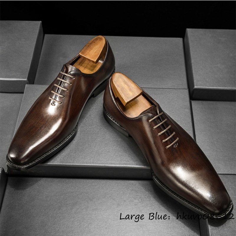 入手困難&最上級 ビジネスシューズ メンズ 職人手塗り上げ 本革 レザーシューズ 高級牛革 紳士靴 革靴 フォーマル 通勤 3E 珈琲色 25.0cm