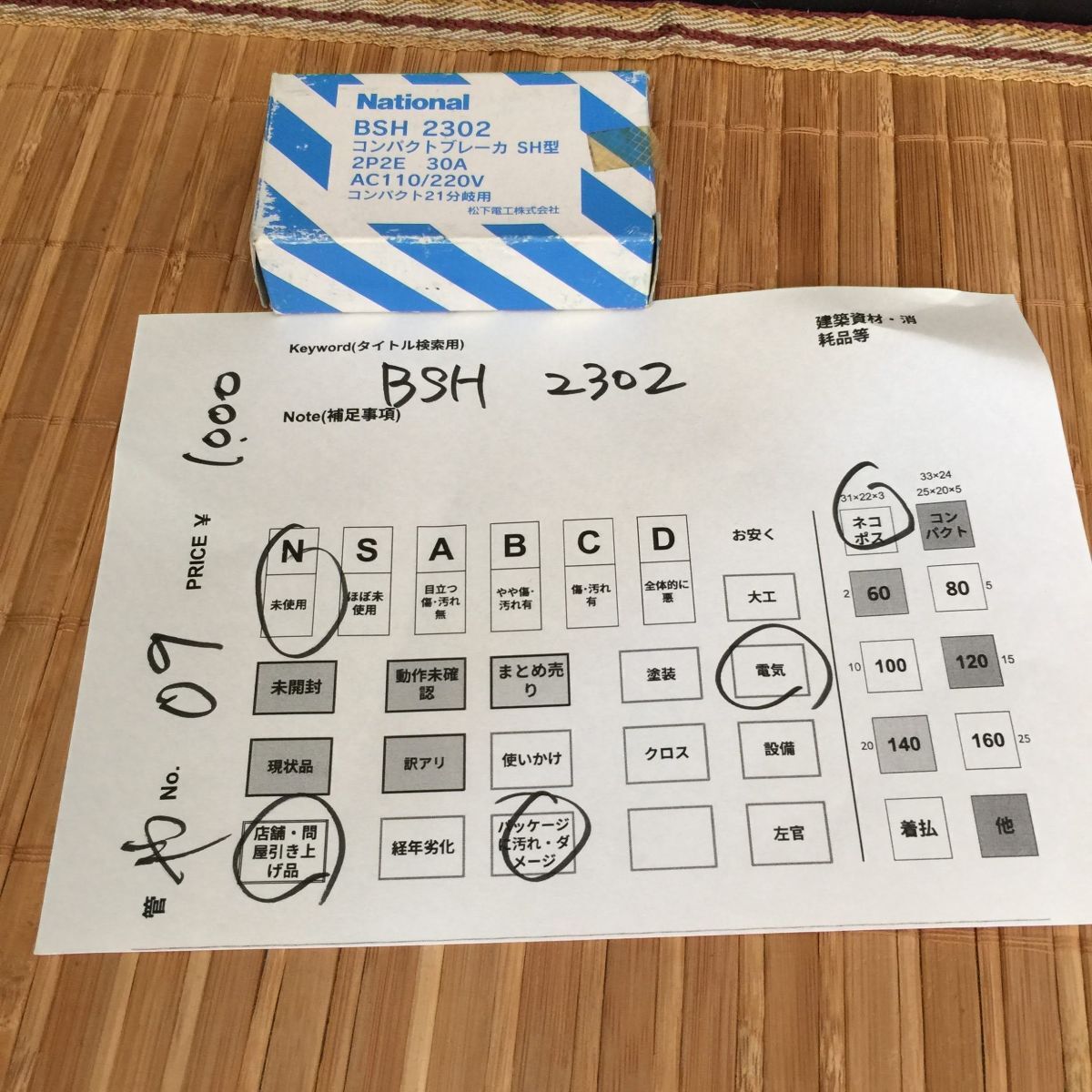 管や【未使用品】national BSH2302 コンパクトブレーカ SH型 2P2E 30A ナショナル 電気工事 建築 設備 材料