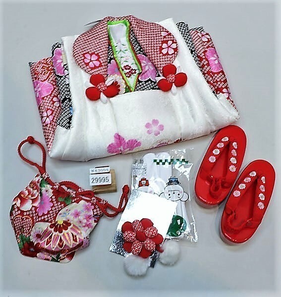 項目 | 三歳被布着物フルセット ・着物 ・長襦袢 ・被布コート ・巾着 ・髪飾り ・伊達衿(着物に縫い付い済み) ・半襟(襦袢に縫い付け済み) ・草履 ・かかと止めバンド ・足袋:15~16cm ・付け紐2本(着物縫付済) ・着付け説明のご案内(ご要望のお客様のみ、詳しくは以下明記しております) 以上フルセット |