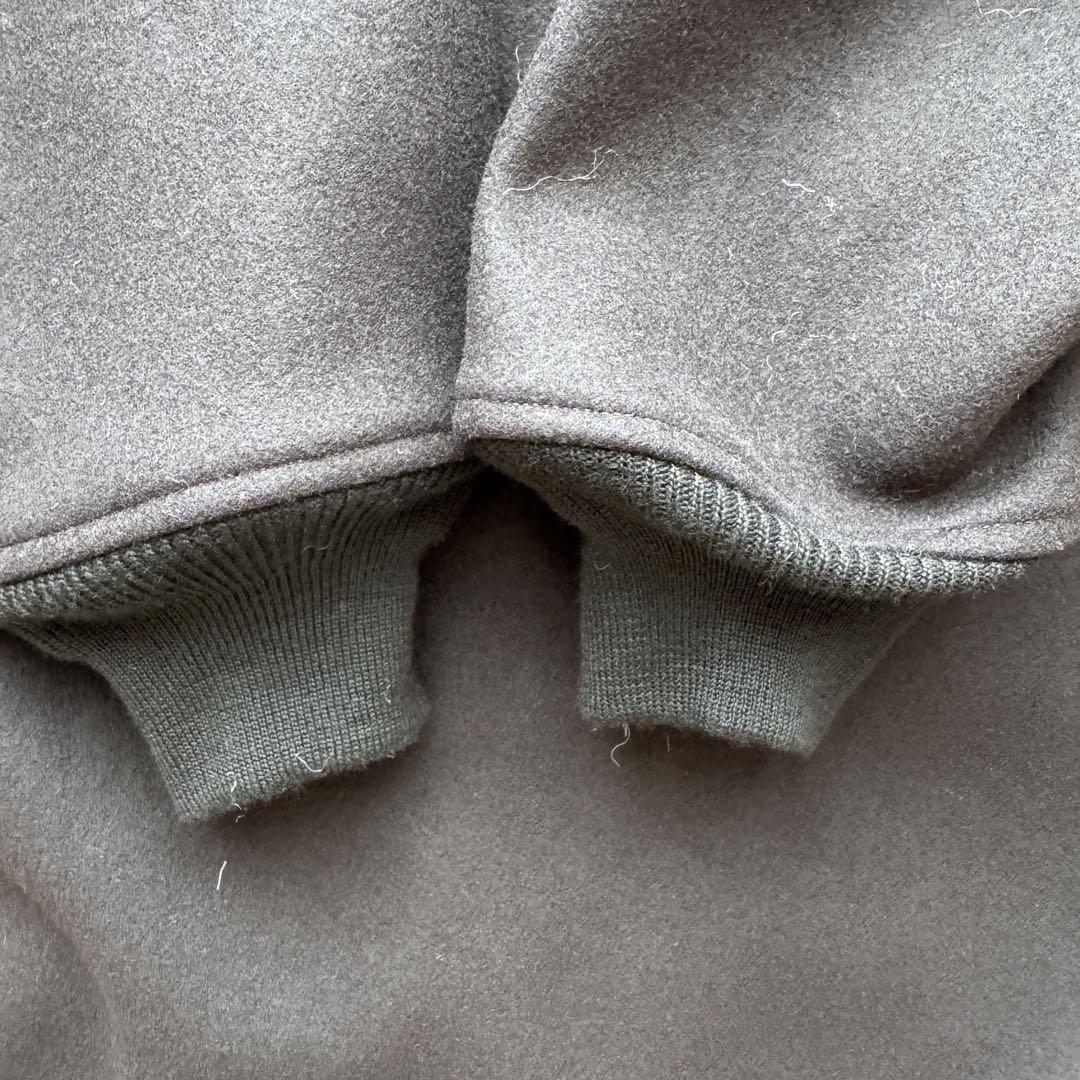 COMOLI (コモリ)のメルトン フーデッドコート(ウールコート、ロングコート)です。カデットコートと言われるミリタリーのコートをイメージソースに、まるで最初から存在していたかと思えるくらい、バランスの良いデザインとシルエットに仕上げられたブランド渾身のメルトンフーデッドコートとなります。あえて素材には断ち切りにしてもほつれてこないほど目の詰まったウールメルトンを使用。身幅やアーム幅はたっぷりと、Aラインを描く美しいシルエットを造形しています。両サイドにはポケット付きで、袖先にはリブを配し、サイドには歩く際にもシルエットが美しく形成されるようスリットが施されています。ジップはスイスの最高級メーカーであるriri社のものを使用するなど、細部に至るディテールにまで拘った作り込みがなされています。こちらは未使用タグ付きとなりますので、プレゼントにもいかがでしょうか。