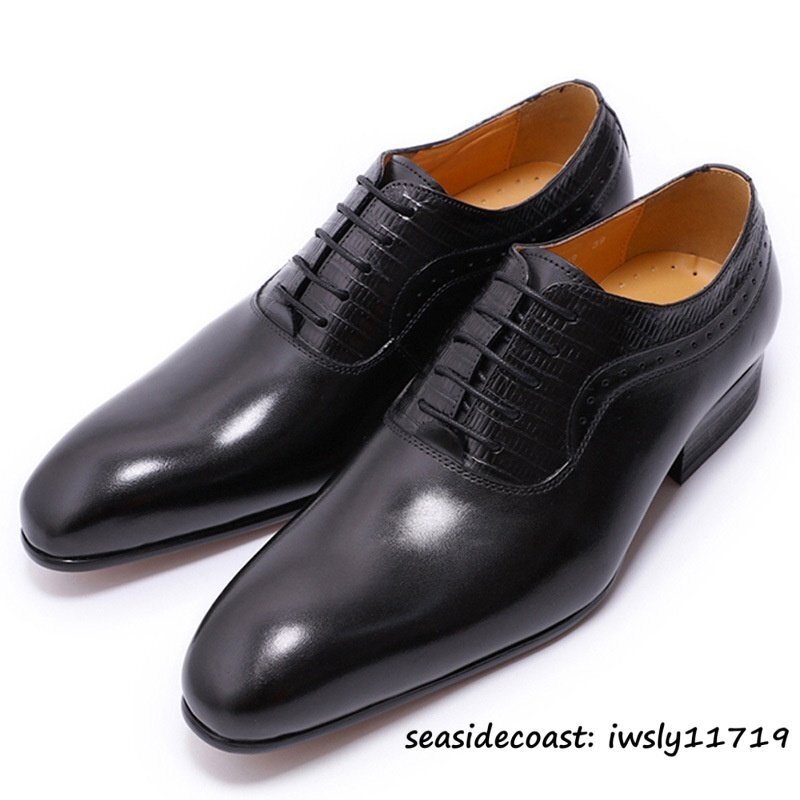 定価9万超★最高級 牛革 ビジネスシューズ 本革 レザーシューズ 職人手作り 紳士靴 フォーマル 革靴 結婚式 フォーマル ブラック 27.0cm