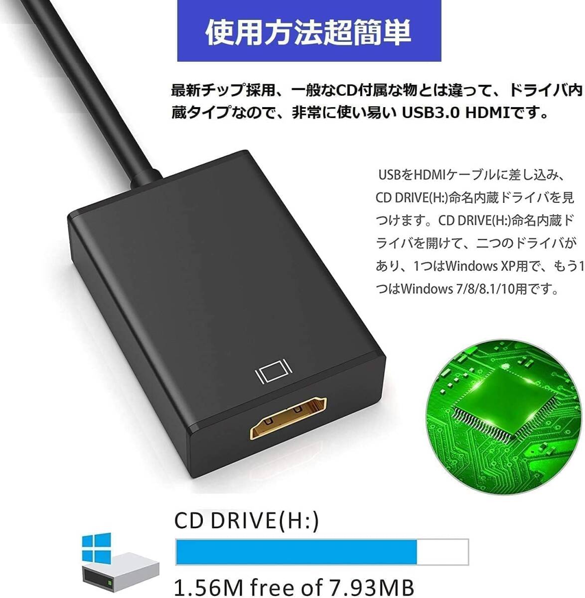 • ★手軽に使用:新型usb hdmiケーブルで、dvd付きのものとは違って、ドライバー内蔵タイプで、内蔵のドライバーをインストールだけですぐ利用できます。ps1:(PCでモニターが認識できない場合は、パソコンのウイルス対策ソフトを消して説明書に従って添付ファイルを再インストールしてくださ。)ps2:(サードパーティ製ドライバソフトウェア、ウイルスではありません。)