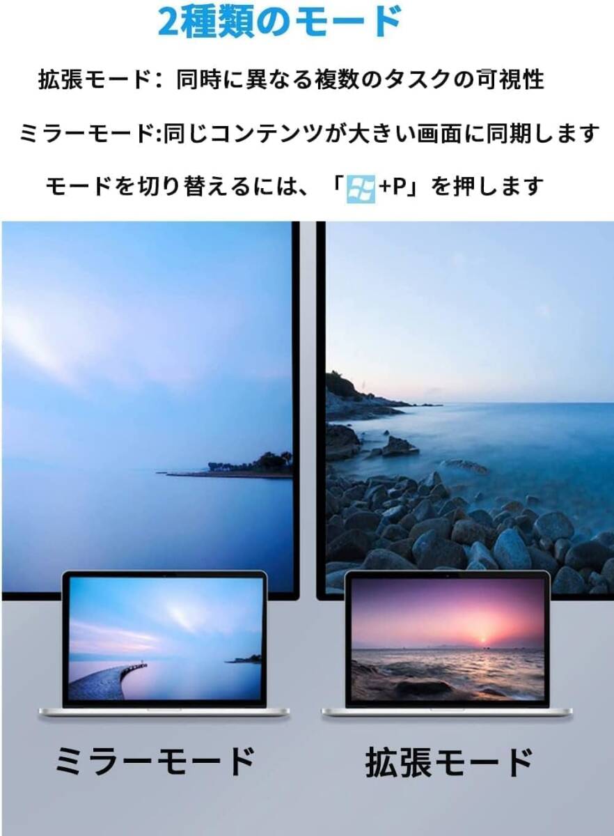 • ★簡単に拡張と複製:電源供給は不要で、利便性は高いです。必要によって拡張モードとミラーモードの2種のモード選択が可能です。会議室の大型テレビやプロジェクターにノートPCを接続し、手元の画面を見ながらプレゼンできます。ノートPCの小さな画面を、大画面ディスプレイやプロジェクターへ出力することができるusb to hdmiアダプタです。