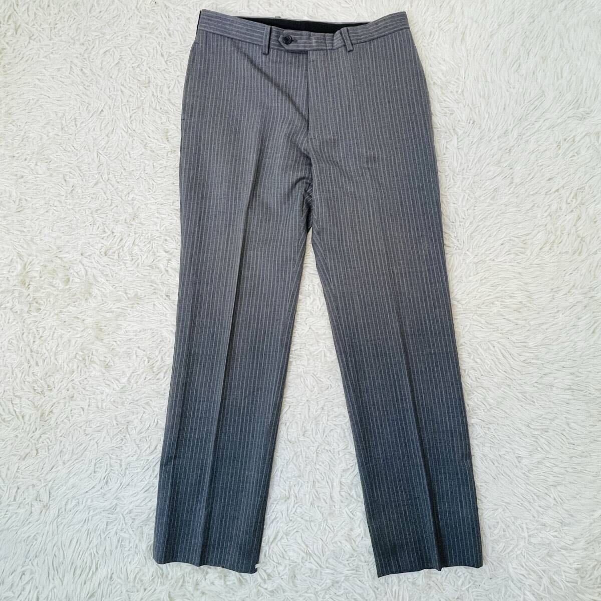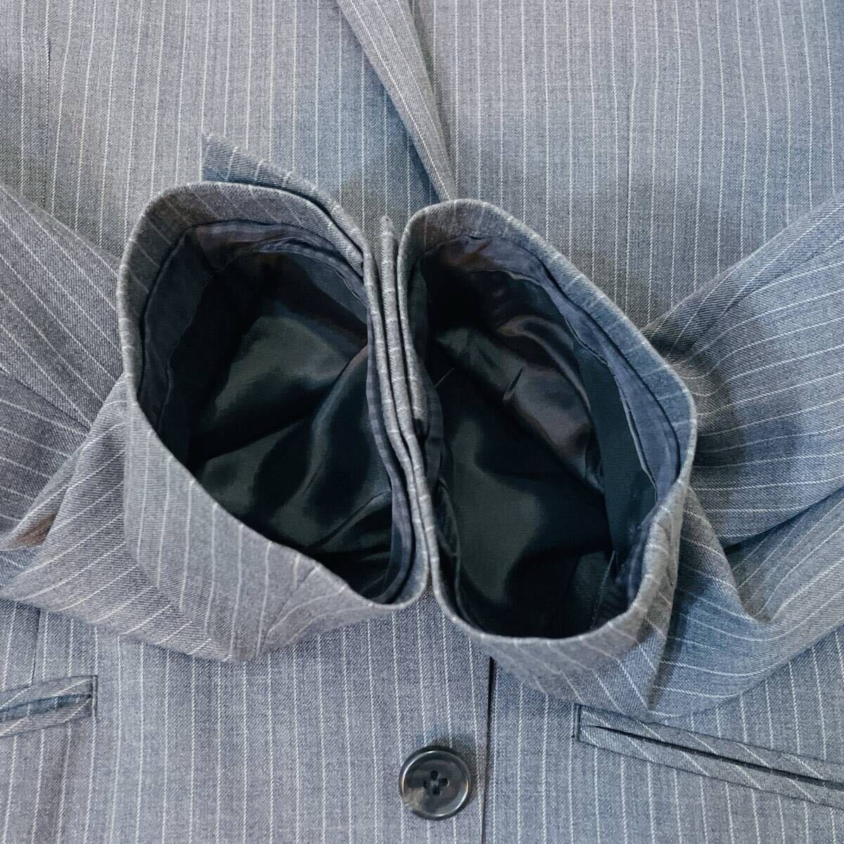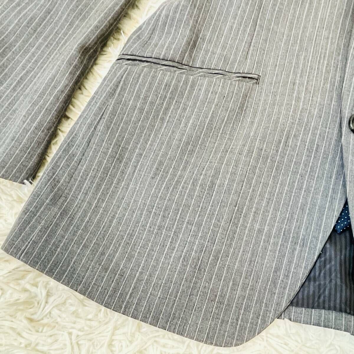 YH318 美品 UNPRIX アンプリ ストライプ セットアップスーツ M グレー ビジネス スマート ハイセンス 商談 勝負服