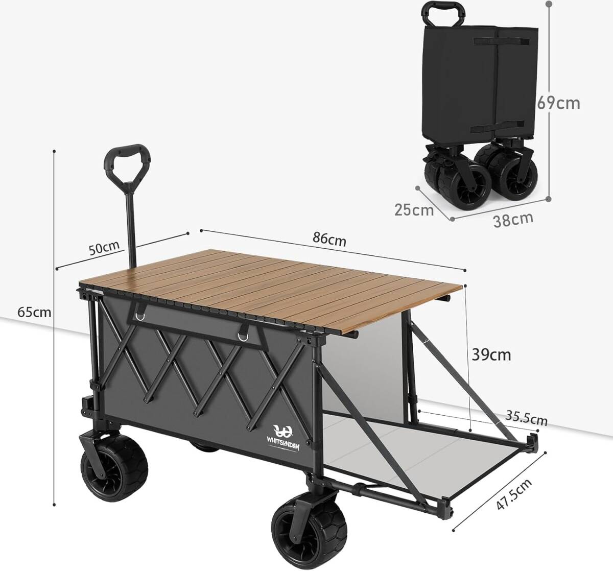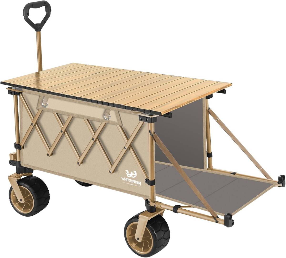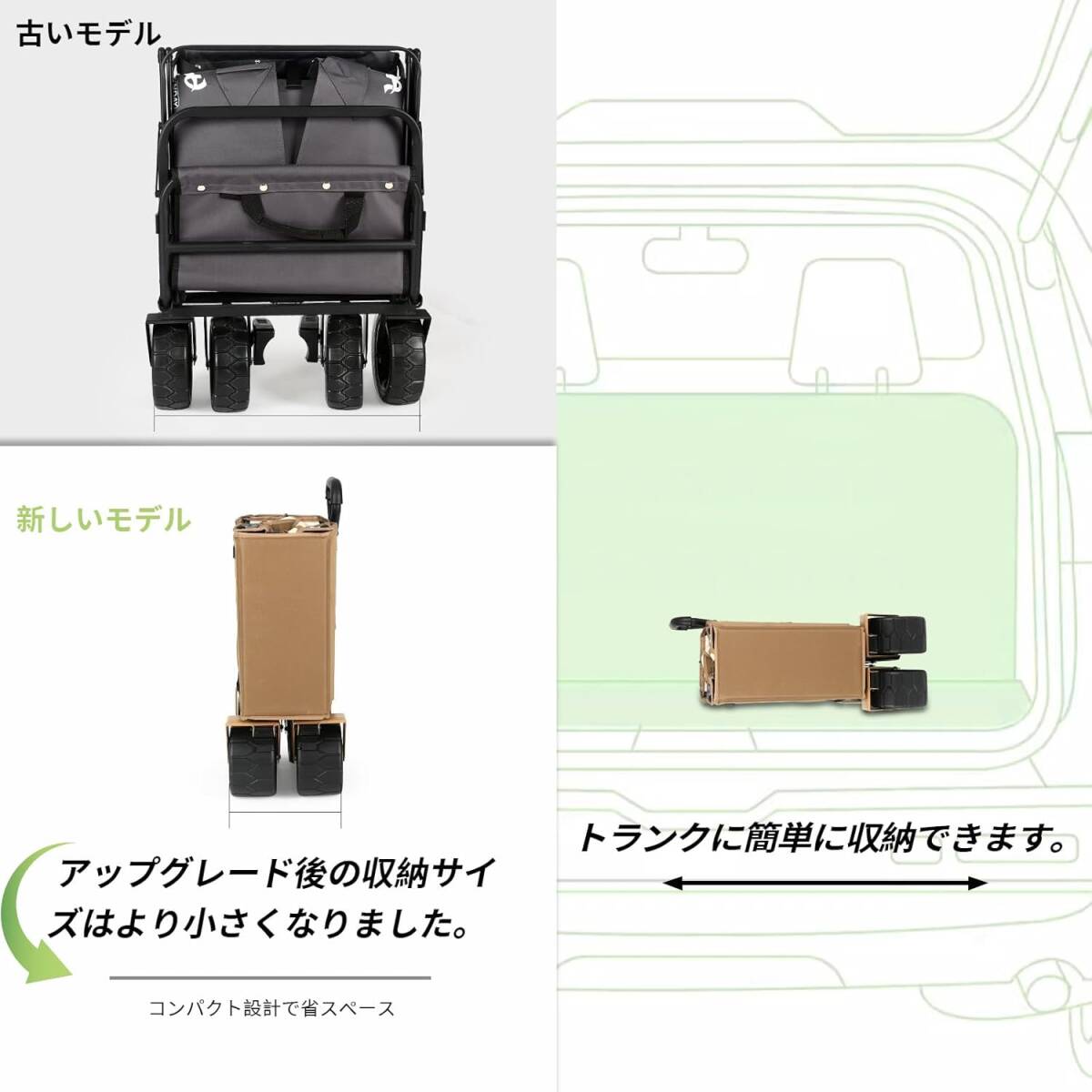 カーキ色 アウトドアワゴン 【後部展開可】【テーブル付き】特大容量 耐荷重200kg 長物対応 キャリー 【ベアリング付き】