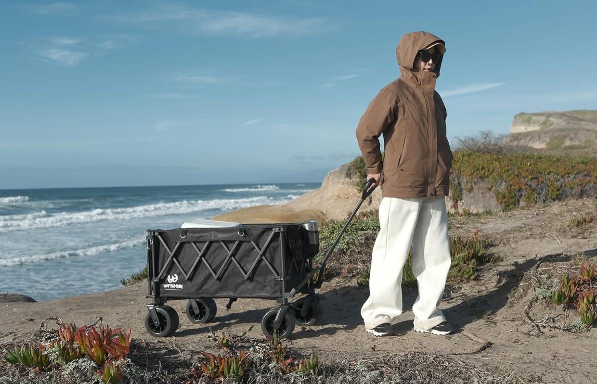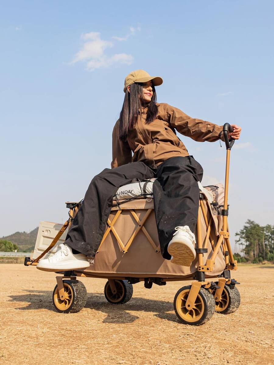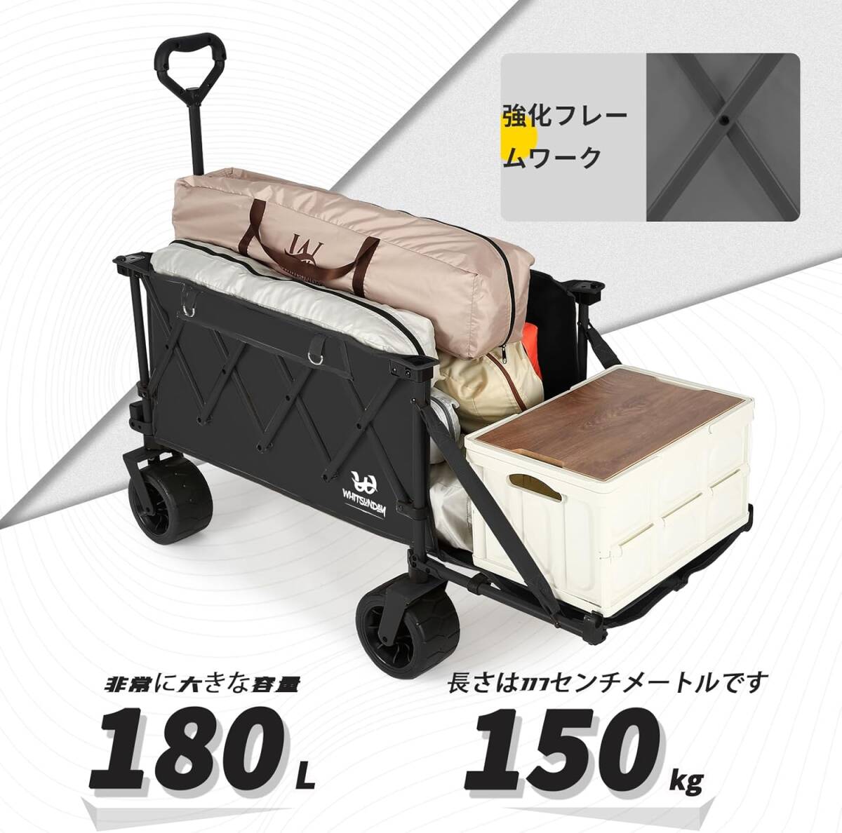 カーキ色 アウトドアワゴン 【後部展開可】【テーブル付き】特大容量 耐荷重200kg 長物対応 キャリー 【ベアリング付き】