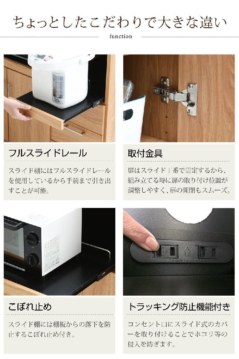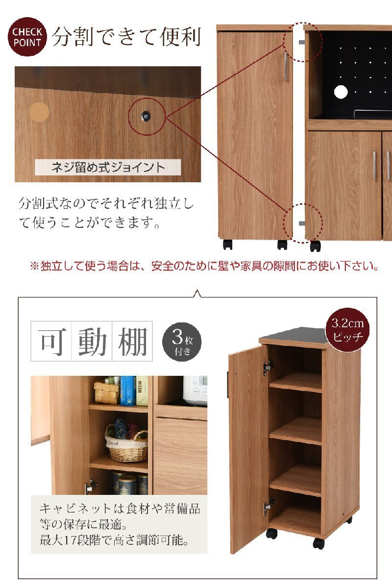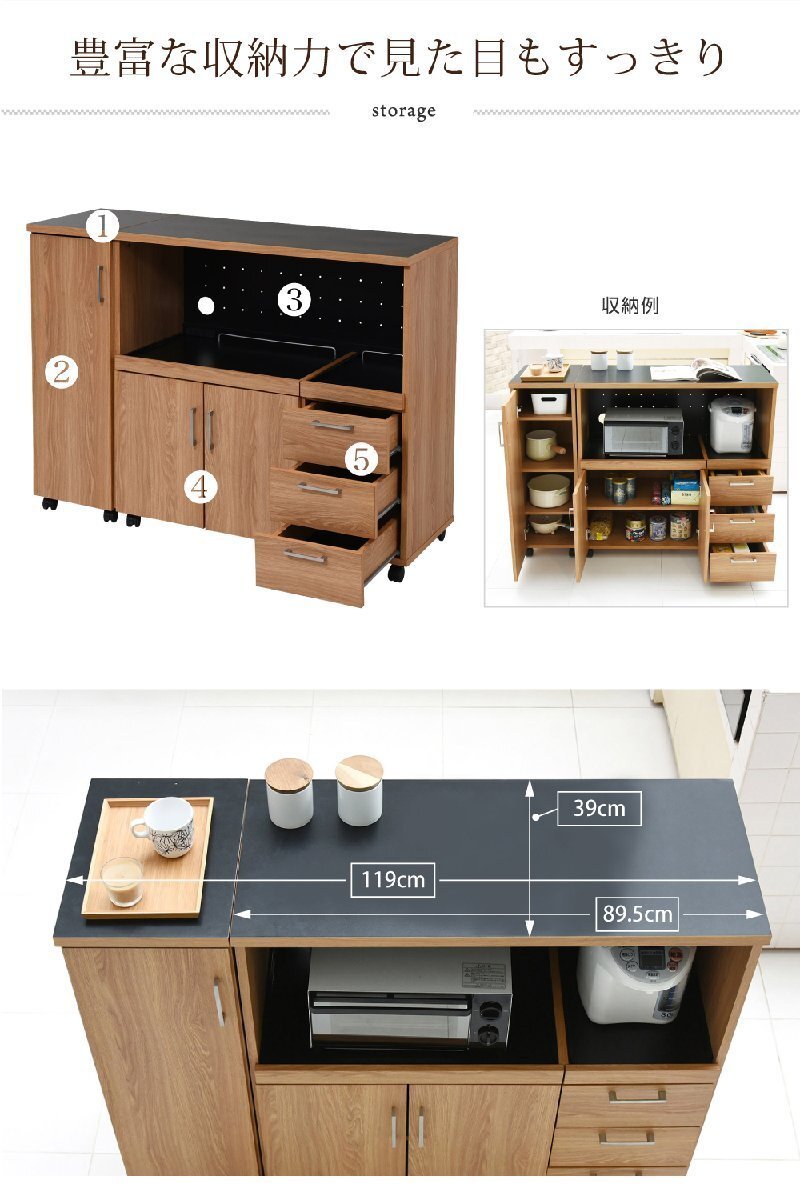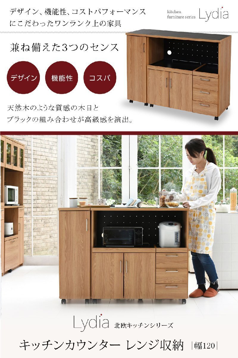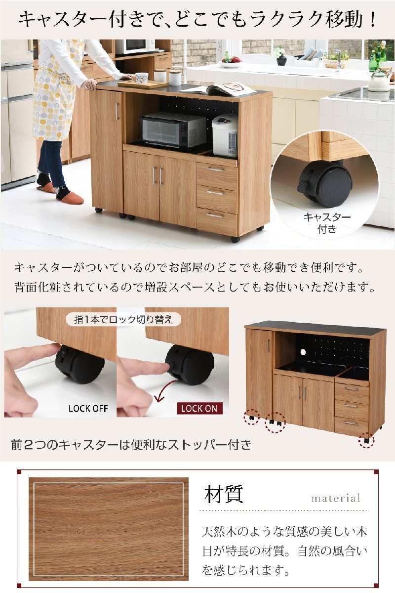 | ■商品説明 家電だけじゃなく、食器や小物類も収納できるカウンターワゴン。シーンに合わせて使い分けができるカウンター。 |