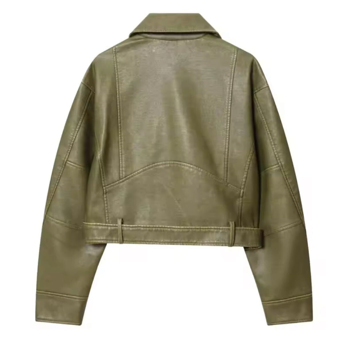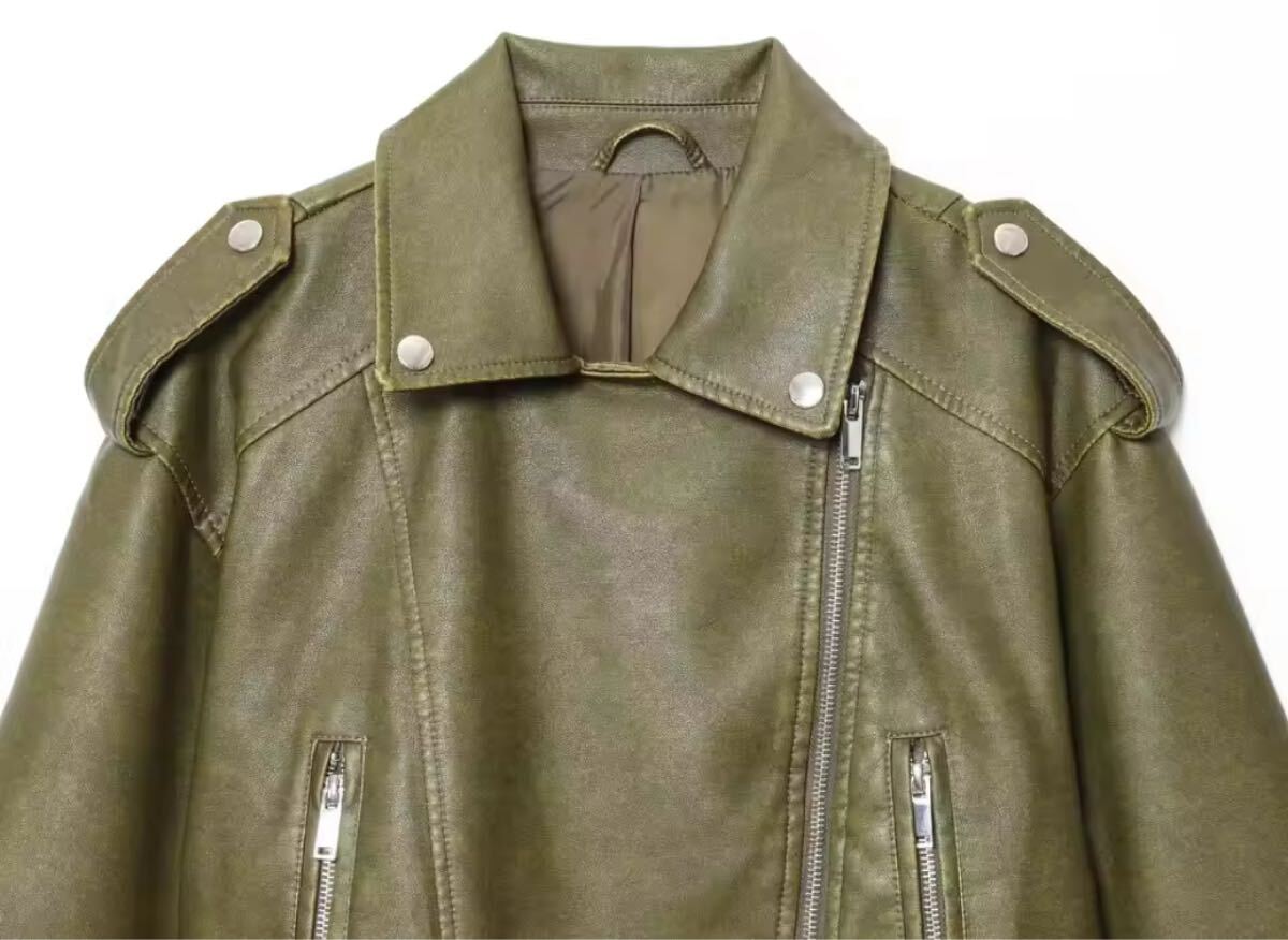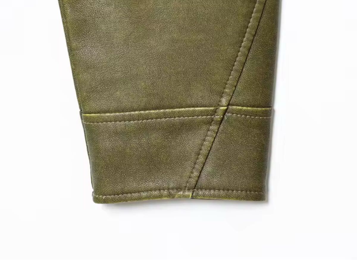 新品★秋新作★vintage ヴィンテージ レトロ green フェイクレザー ライダースジャケット アウター Lサイズ レディース★ZARA 好きな方に