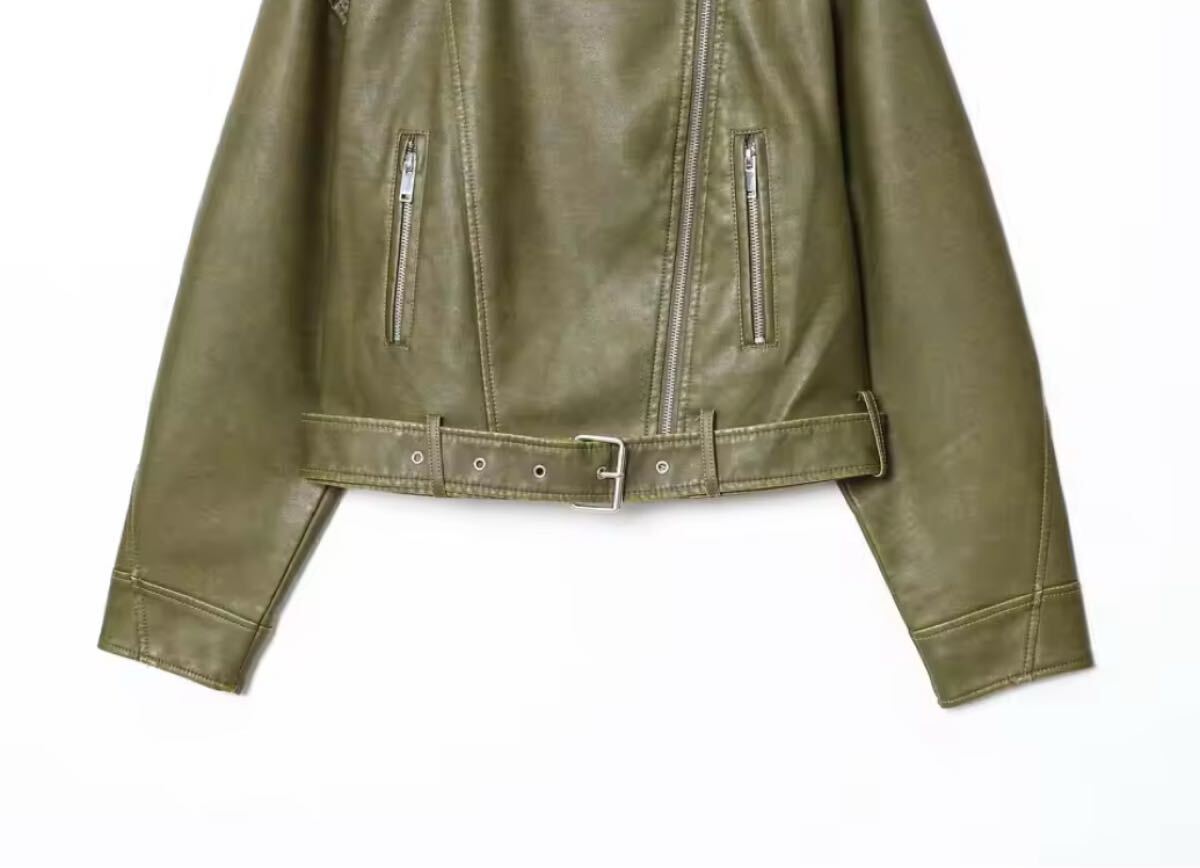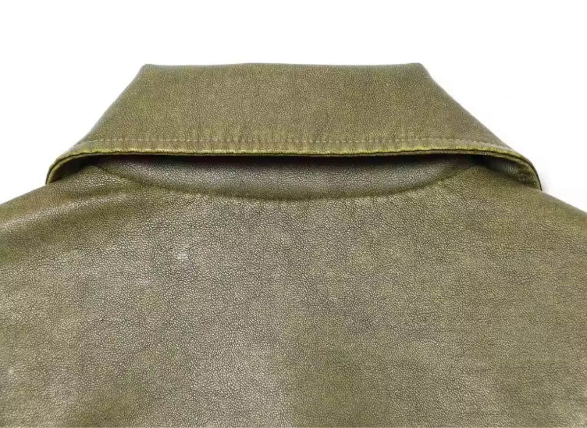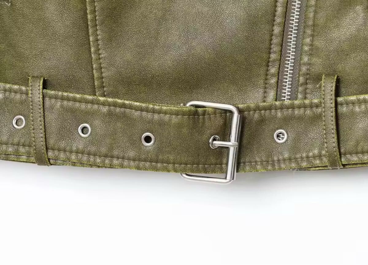 新品★秋新作★vintage ヴィンテージ レトロ green フェイクレザー ライダースジャケット アウター Lサイズ レディース★ZARA 好きな方に