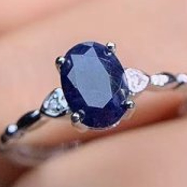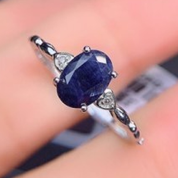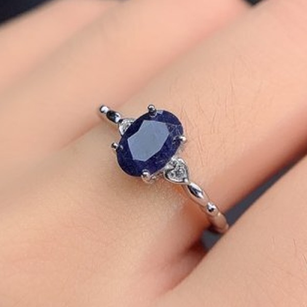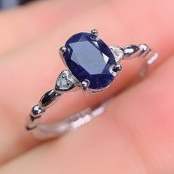 女性のためのシルバー天然サファイアリング、ソリッド925シルバー、0.5ct、5×7mm、天然サファイア宝石