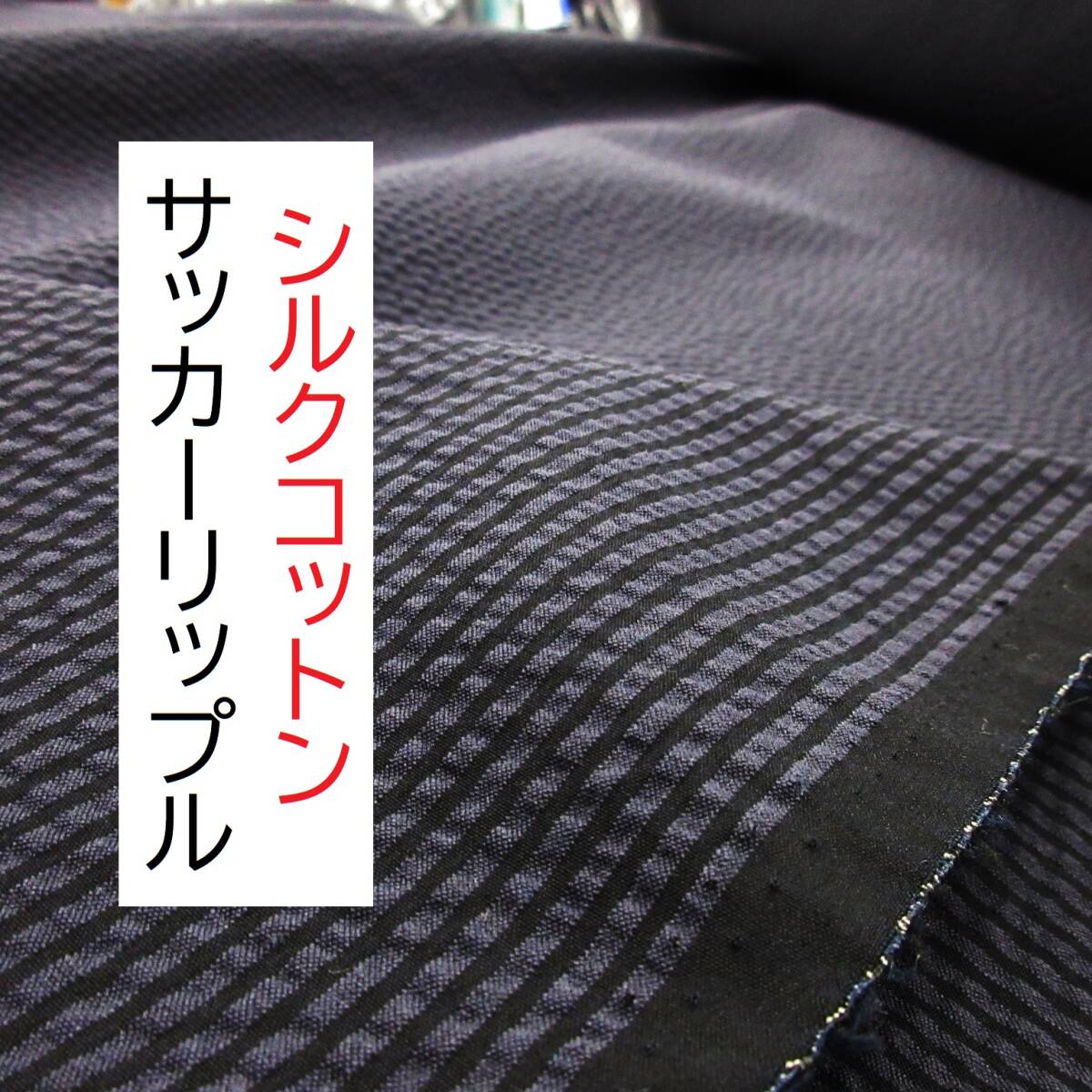 ★シルク★コットン★中肉★サッカー★リップル★紺★黒★チャコール★3333★延長可★ハンドメイド★生地★布★新品★同梱発送可能★