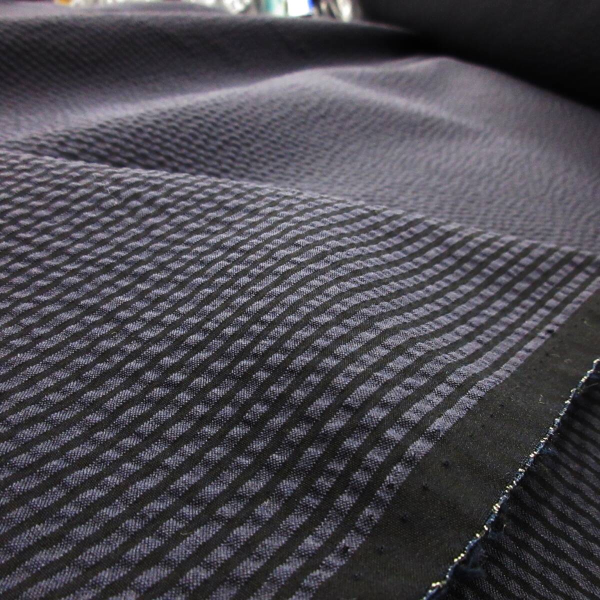 ・緯糸にネイビー経糸に黒とチャコールの糸を織り込んだサッカー/リップル生地になります