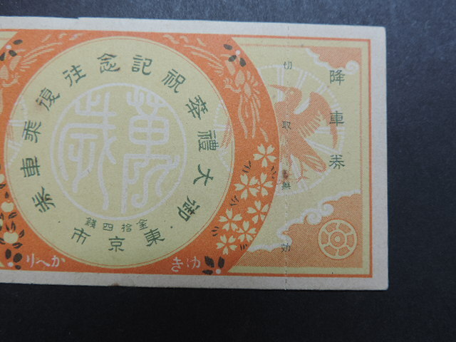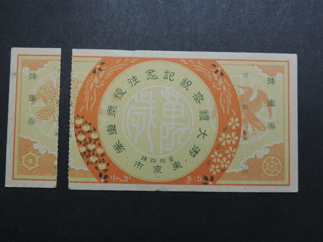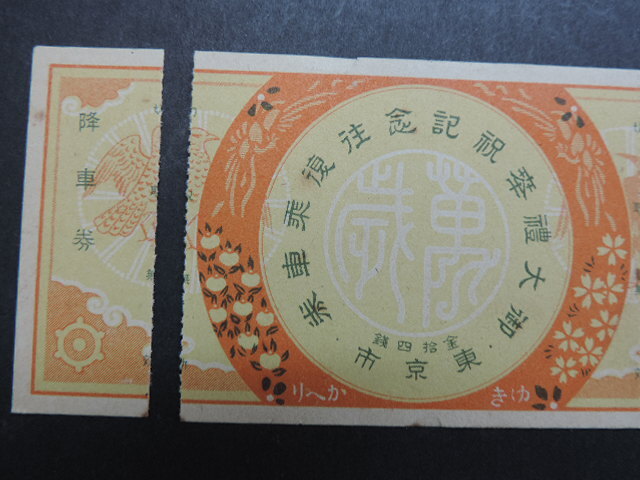 ★御大礼 御大禮奉祝記念 往復乗車券★ 東京市 金十四銭 切り取り線(破れ)・裏面難あり